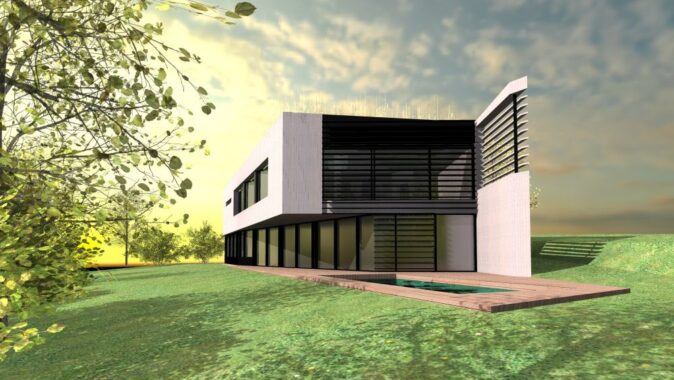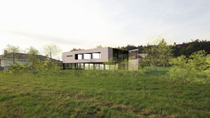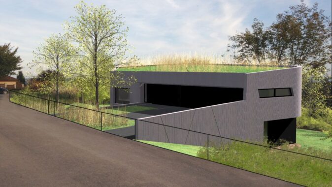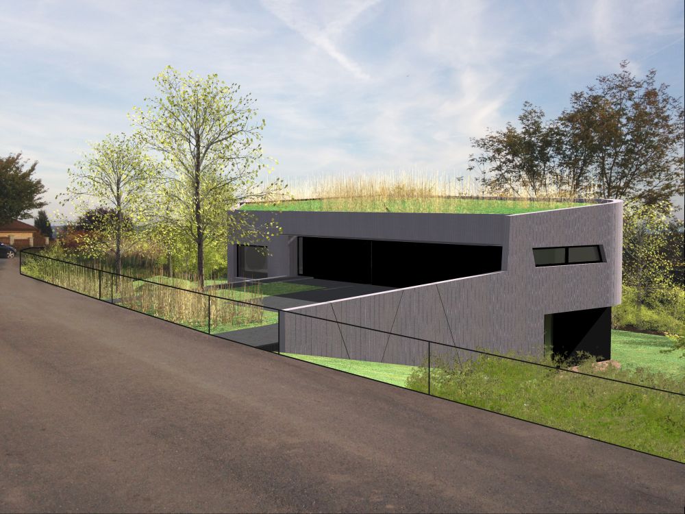jihozápadě. Dům využívá přirozeného sklonu svahu, má jedno podzemní, plně