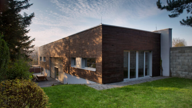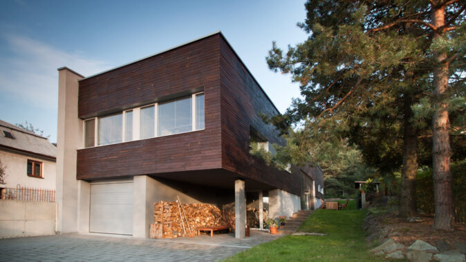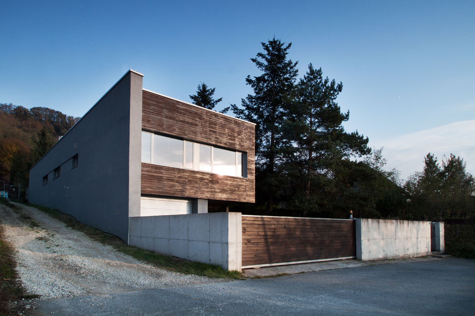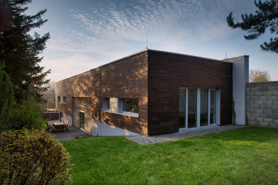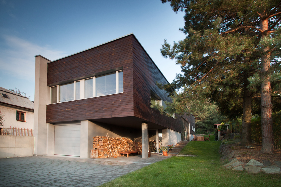 Východiska: Svažitá podélná parcela má východozápadní orientaci. Stísněné podmínky ve stávající málo hodnotné zástavbě s přilehlou komunikací k sousednímu objektu a stezkou k sousední zahradě, na východní straně je zalesněný masiv.