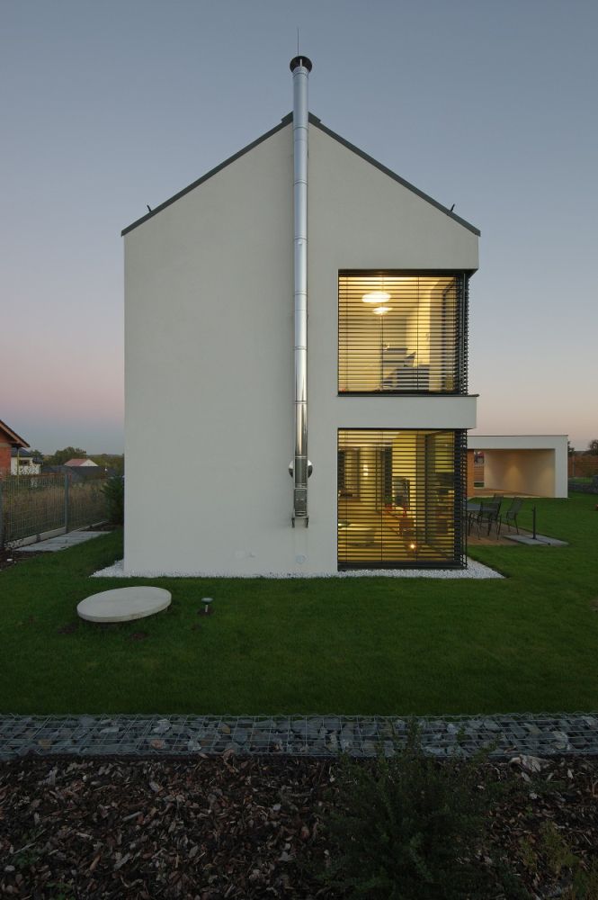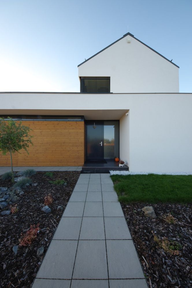Příběh tohoto domu ukazuje, že cesta k cíli nemusí být vždy z nejpřímějších. K zakázce jsme se dostali na doporučení společného známého. Byli jsme přizváni do malé architektonické soutěže organizované investorem. Soutěž jsme vyhráli, ale dům měl původně stát na úplně jiném místě. Investorovi se však naskytla možnost jiného zajímavého pozemku, a tak jsme navrhovali stavbu pro nové místo. A protože platí do třetice všeho dobrého, na další zadanou parcelu, nejlepší místo, se skica dočkala realizace.