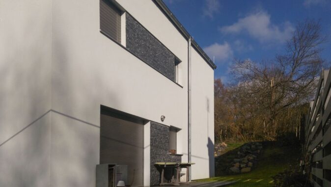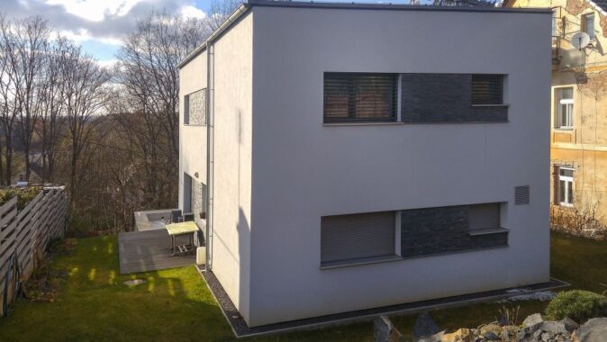 Návrh domu byl ovlivněn svažitostí terénu, přístupem