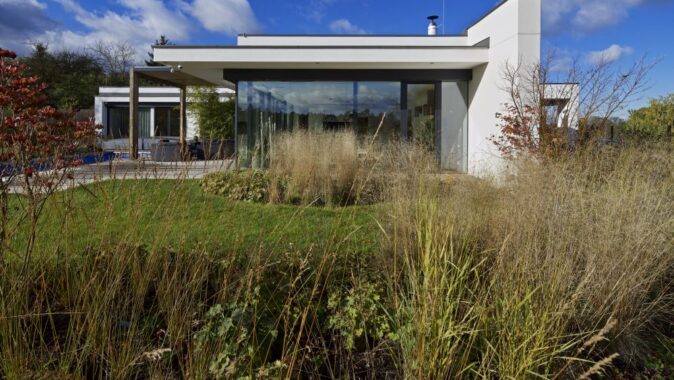 bungalovu na přední část pozemku k ulici poskytuje obyvatelům dostatek prostoru