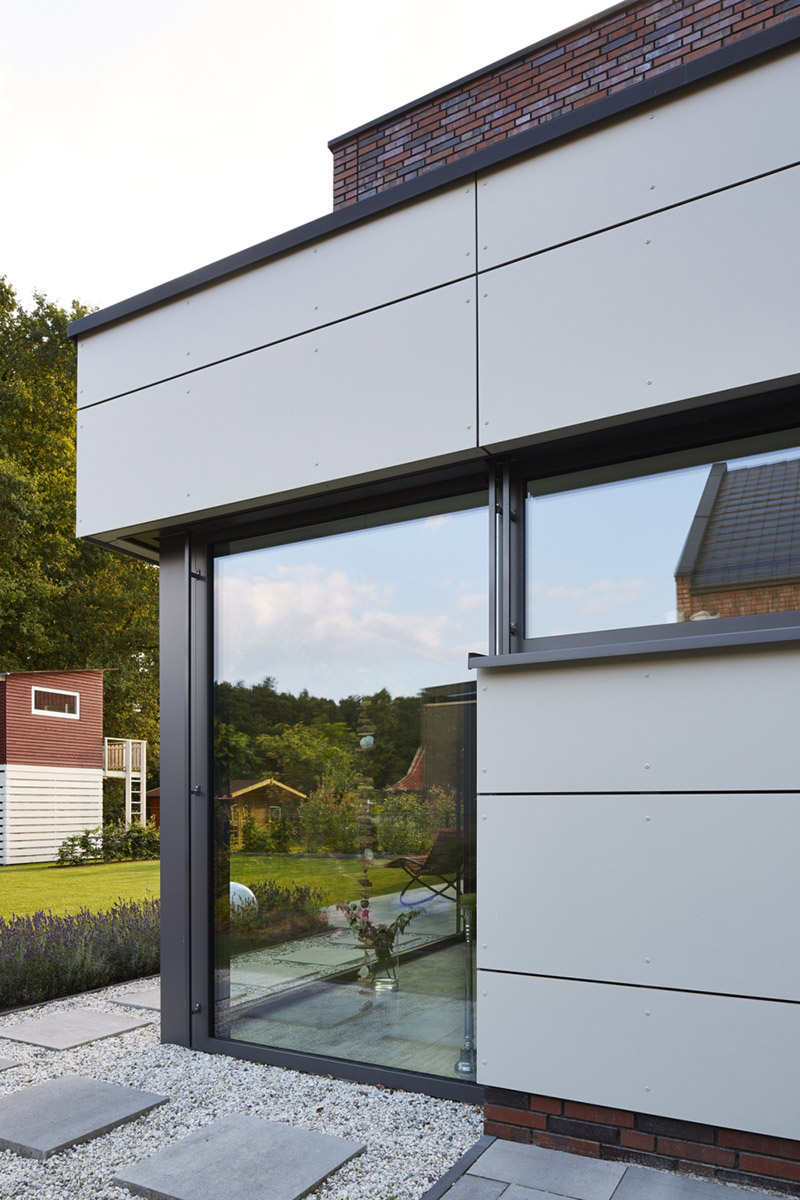 materiálů. Naopak sjednocující úlohu má velkoformátové zasklení a vchodové