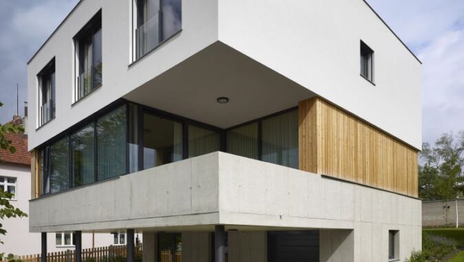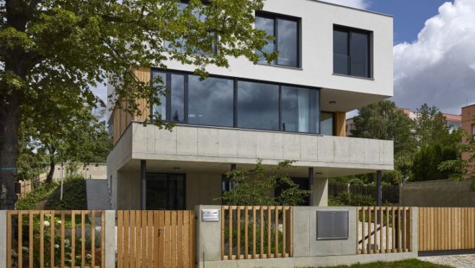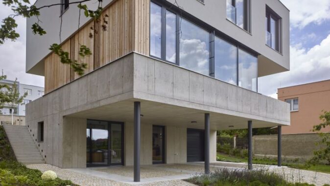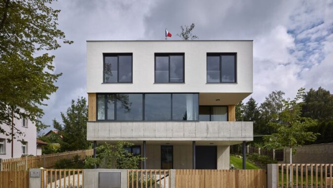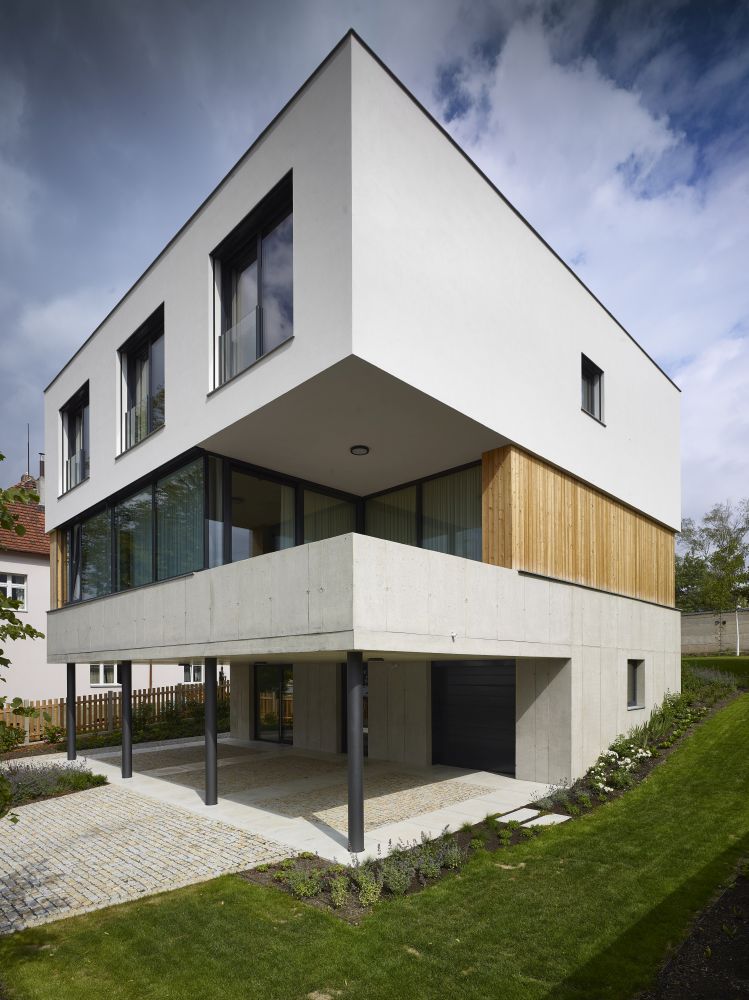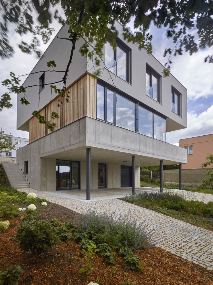 Ústředním motivem konceptu byla snaha propojit hlavní obytný prostor na sever i na jih s exteriérem. Jeho umístění v prostředním podlaží umožnilo využít svah k přímému přístupu do zahrady.