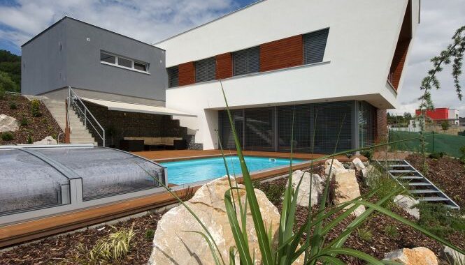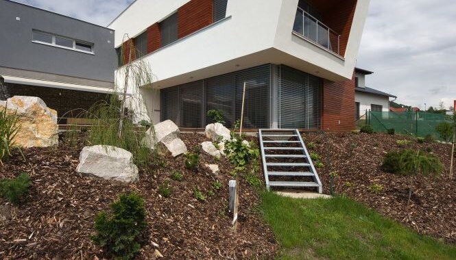 je při horní hranici parcely, takže se dům neotevírá jen vstříc krásným