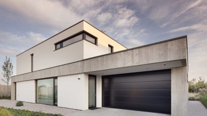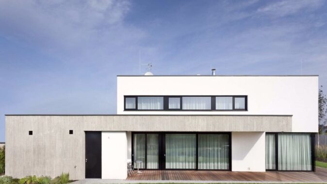 V interiéru jsou obklady z makasaru, v koupelnách z travertinu, podlahu pokrývají prkna z dubu. Fasáda byla navržena jako kombinace bílé omítky a pohledového prkénkového betonu. Fasády jsou prořezány prosklenými výplněmi otvorů v hliníkových rámech.