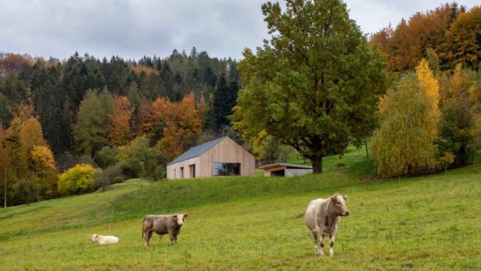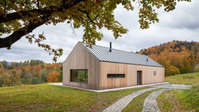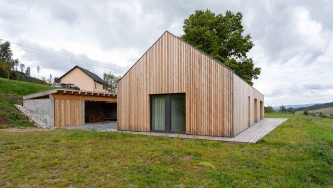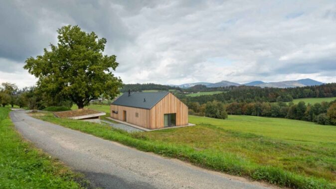 Po nějaké době jsme přijali výzvu na horách, na Valašsku, v obci Vidče nedaleko Rožnova pod Radhoštěm. Menší rodinný dům, jednoduchá dřevostavba, vychází z historického rázu valašských staveb, založených na obdélníkovém půdorysu, se vstupem ze střední části a s překrásnými výhledy do krajiny. Symbolem okolí je hora Radhošť.