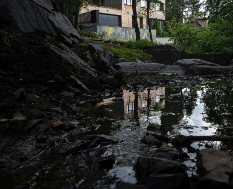 Jelikož se pozemek nachází kompletně na skále a velmi prudkém svahu, bylo nutno