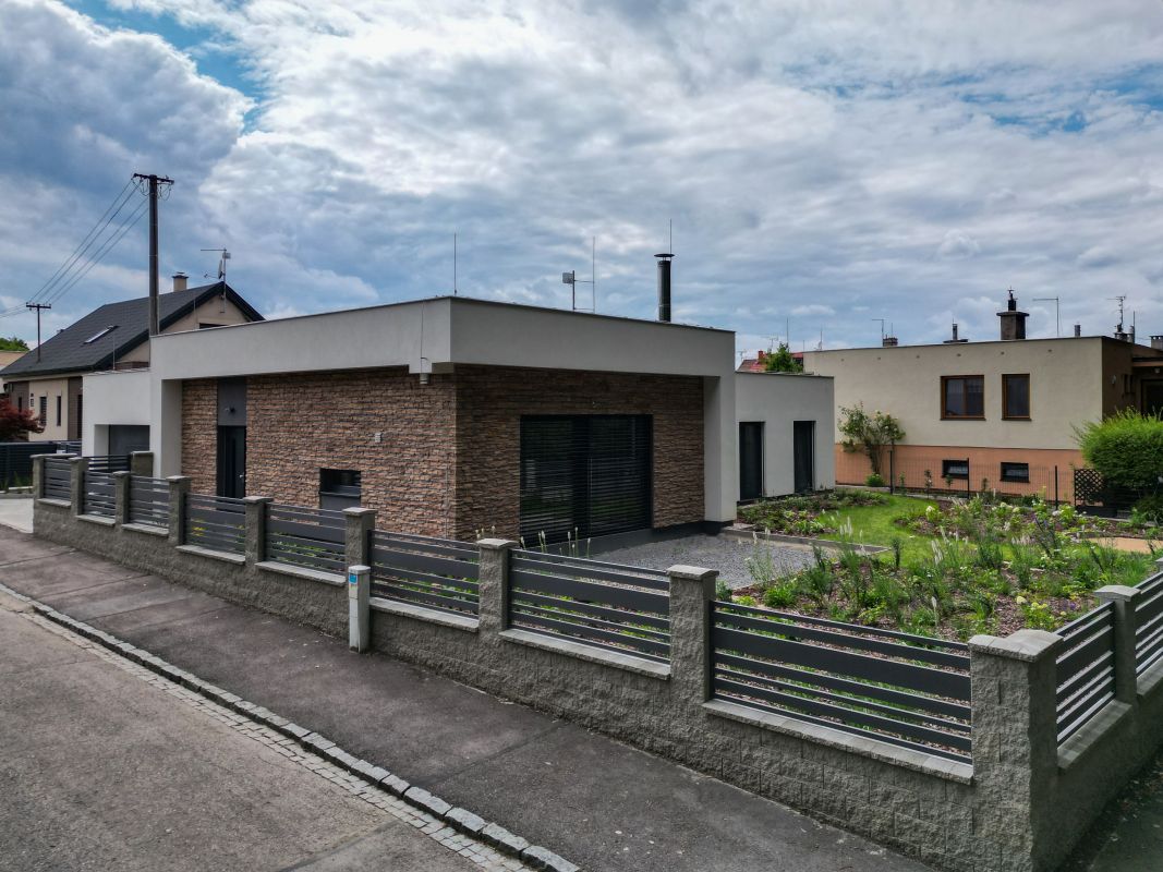 jednopodlažního nepodsklepeného rodinného domu. Fasáda domu je řešena