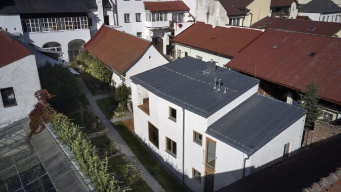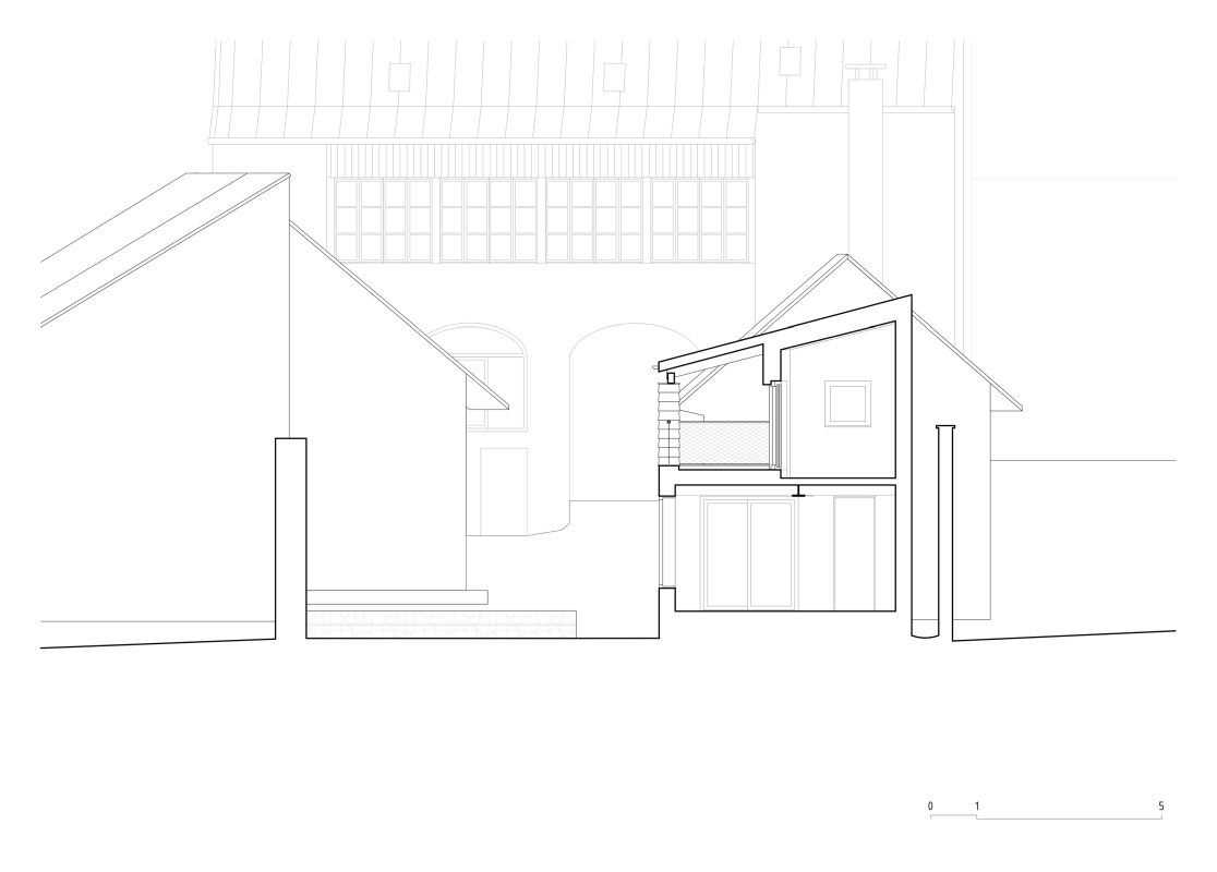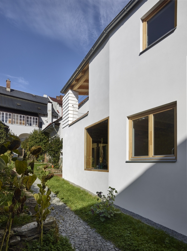 Zadáním byl návrh přístavby rodinného domu ve vnitřním dvoře historického měšťanského domu v centru Nového Města na Moravě s využitím pro občasné bydlení čtyřčlenné rodiny s předpokladem budoucího využití pro trvalé bydlení. Důležitým aspektem zadání bylo zachovat a posílit ducha místa historické stavby, struktury zástavby města, a současně poskytnout dostupné bydlení v současném moderním standardu. Neméně důležitým požadavkem investora bylo propojení interiéru s venkovním prostorem dvora se zahradou a vytvoření chráněného venkovního pobytového prostoru, který bude orientován do osluněné části zahrady.