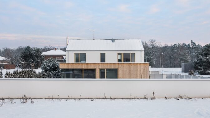 předsazené nízké hmotě si zachovává moderní ráz. Bíle omítnutý minimalistický