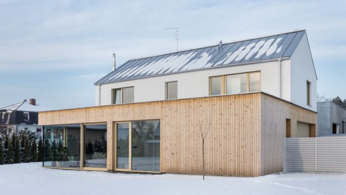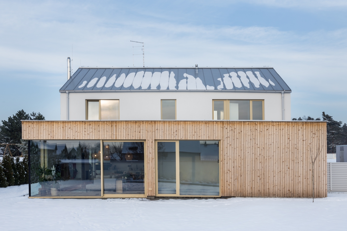 Dům ve Vestci respektuje tradiční tvarosloví se sedlovou střechou, ale díky