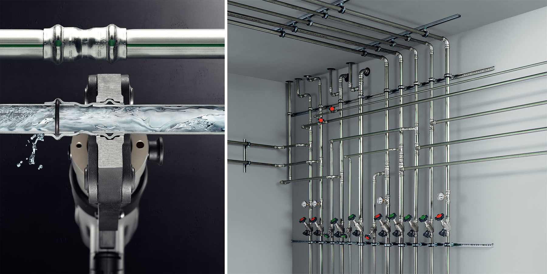 Aby byla zachována tuhost a těsnost spojů a zároveň došlo k odstranění hlavních nevýhod svařovaných spojů, bylo žádoucí vyvinout novou metodu spojování – lisování. Mezi průkopníky v lisovací technice patří i společnost Viega, která většinu svých produktů nenavrhuje jinak než pro metodu spojování lisováním. „Lisování je rychlé, jednoduché a bezpečné. Při lisování navíc nedochází k tak velkému zúžení vnitřního průměru potrubí ani k uvolňování zbytků materiálu. Naše tvarovky jsou navíc navrženy tak, aby při vkládání a spojování trubek nedocházelo k poškození těsnění a jeho následnému uvolnění do potrubí. Tím nedáváme prostor bakteriím k jejich rozmnožování na zbytcích uvolněného materiálu nebo těsnění,“ upřesňuje Kateřina Klimšová ze společnosti Viega.