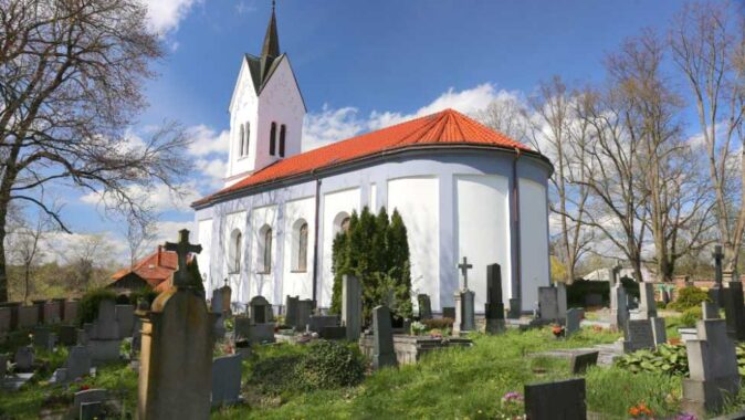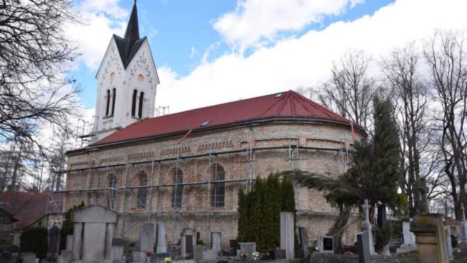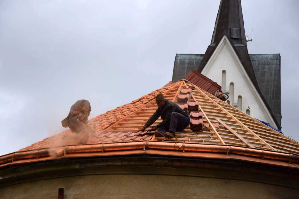 Konkrétně se na střechu pokládala keramická taška Rubín 13 z portfolia značky BMI BRAMAC v odstínu glazura měděná. Zvolený model a barevnost propůjčil střeše kostela velmi harmonický a tradiční vzhled a ladí k použitým klempířským prvkům z mědi (oplechovaná věž kostela, žlaby a svody). Samotná pokládka krytiny ovšem nebyla vůbec jednoduchá: „Pokrývač si musel pohrát s apsidou, u které se sbíhají tašky do jednoho bodu. Skoro každou tašku musel přiřezávat a pokládka mu zabrala třikrát více času, než rovné plochy,“ vysvětluje Jaromír Drda.