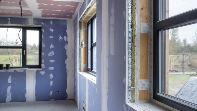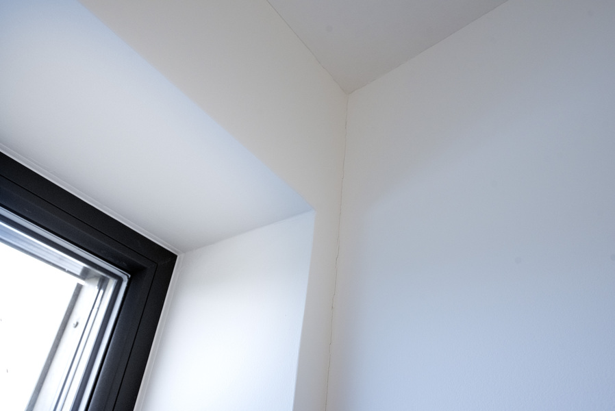 Protože se jedná o dřevostavbu postavenou z přírodních materiálů, bylo jasné, že konstrukce bude pracovat více, než standardní stavba. Proto se použily ve spojovacích rozích u stropů a stěn speciální TRENN-FIX pásky, které pomohly vytvořit v podstatě kluzný spoj a řízenou dilataci, jak je vidět v detailu na obrázku. Kde bylo zapotřebí začištění posloužil pružný a extrémně přilnavý tmel RENOKITT.