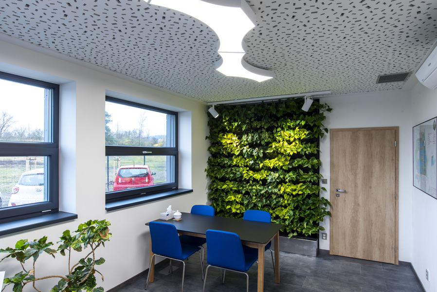 vedení firmy je použit podhled z akustických desek Cleaneo RE