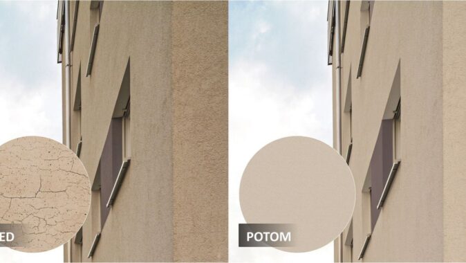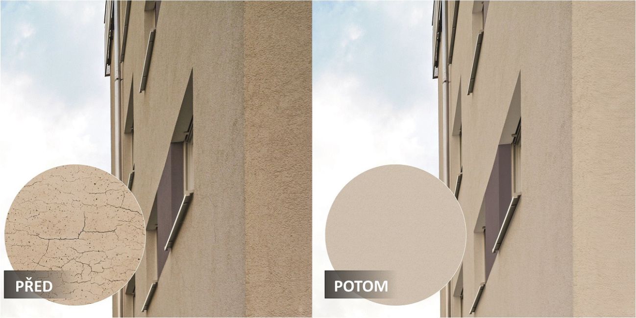 zhoršené estetice fasády. Po 10 až 15 letech je také nutné provést renovační nátěr fasádní barvou. Renovační nátěr obnoví vodoodpudivost fasády, ochrání ji před řasami a plísněmi, zlepší soudržnost povrchu a zvýší odolnost fasády proti povětrnostním vlivům. Odstranění řas a plísní z fasády také snižuje riziko vzniku plísní v interiéru.