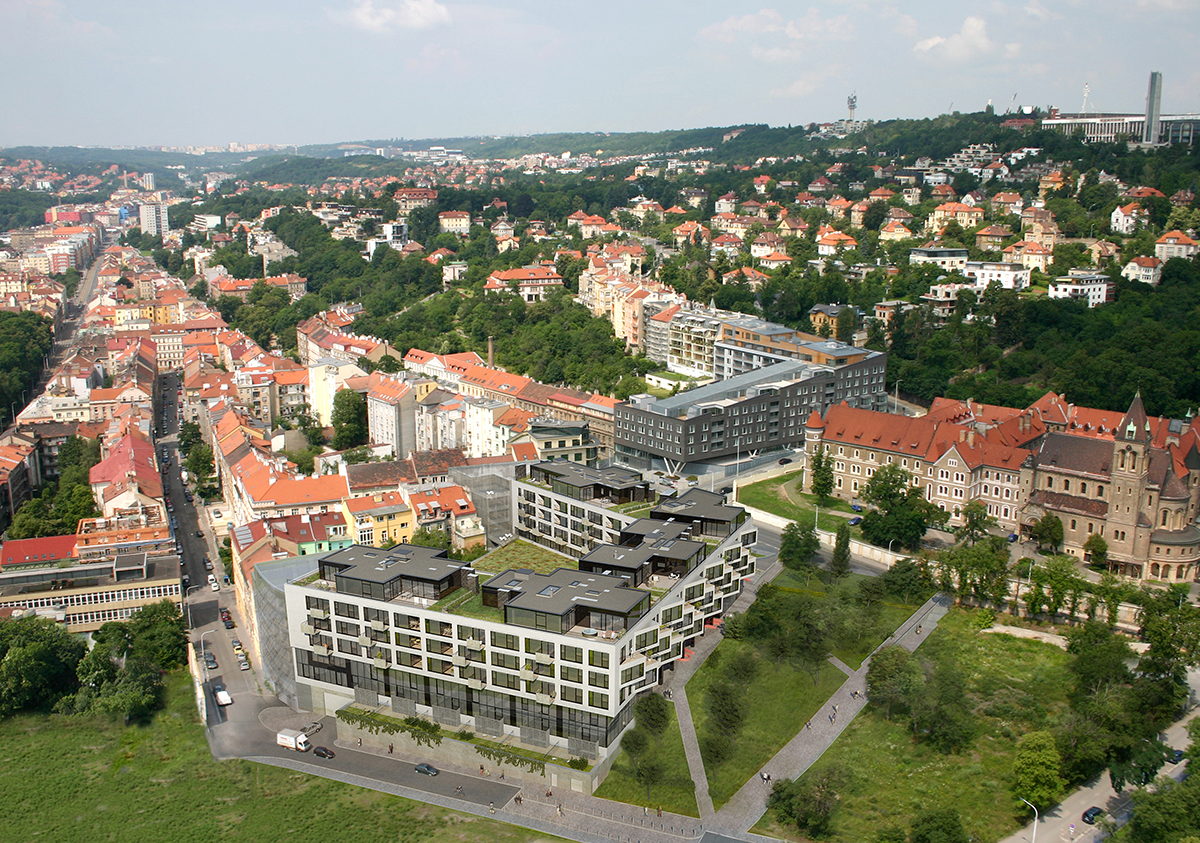 Plánovaná novostavba v jižním svahu pod rezidenční čtvrtí Hřebenky, pár minut pěšky od Kinského zahrady, Nového Smíchova a malostranského Újezdu navrátí žádané rezidenční lokalitě zpět svou slávu, zrekultivuje a zároveň dotvoří okolí, stane se přirozenou dominantou této lokality.