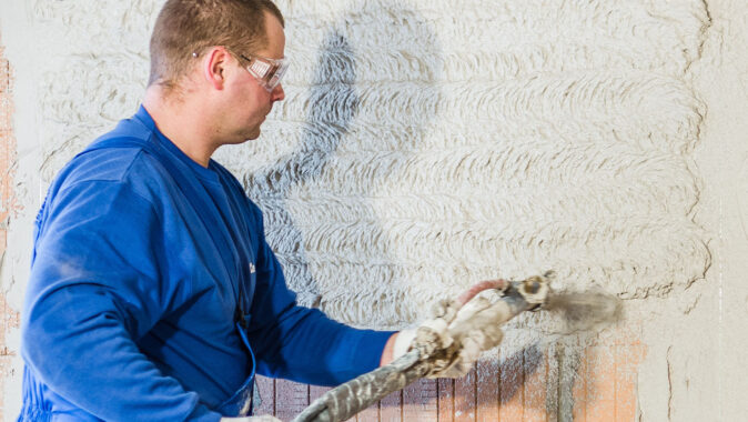 rychlý postup omítkářských prací.
