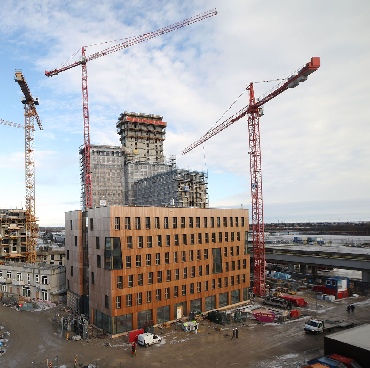 Vídni, pionýrského stavebního díla s hybrdidní konstrukcí se 75%-ním