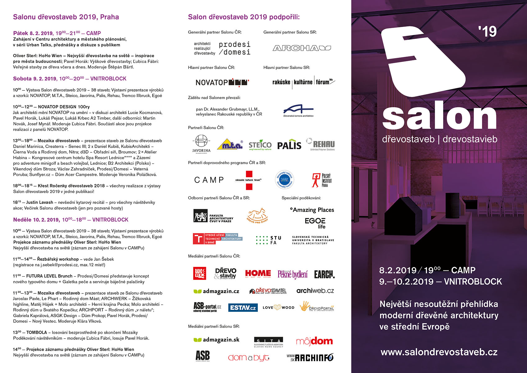 architekturu ze dřeva ve dnech 9. – 10. 2. 2019 do prostoru VNITROBLOCK, Tusarova 31, Praha 7. Pro návštěvníky z řad zájemců o dřevěné domy i