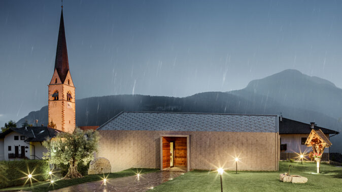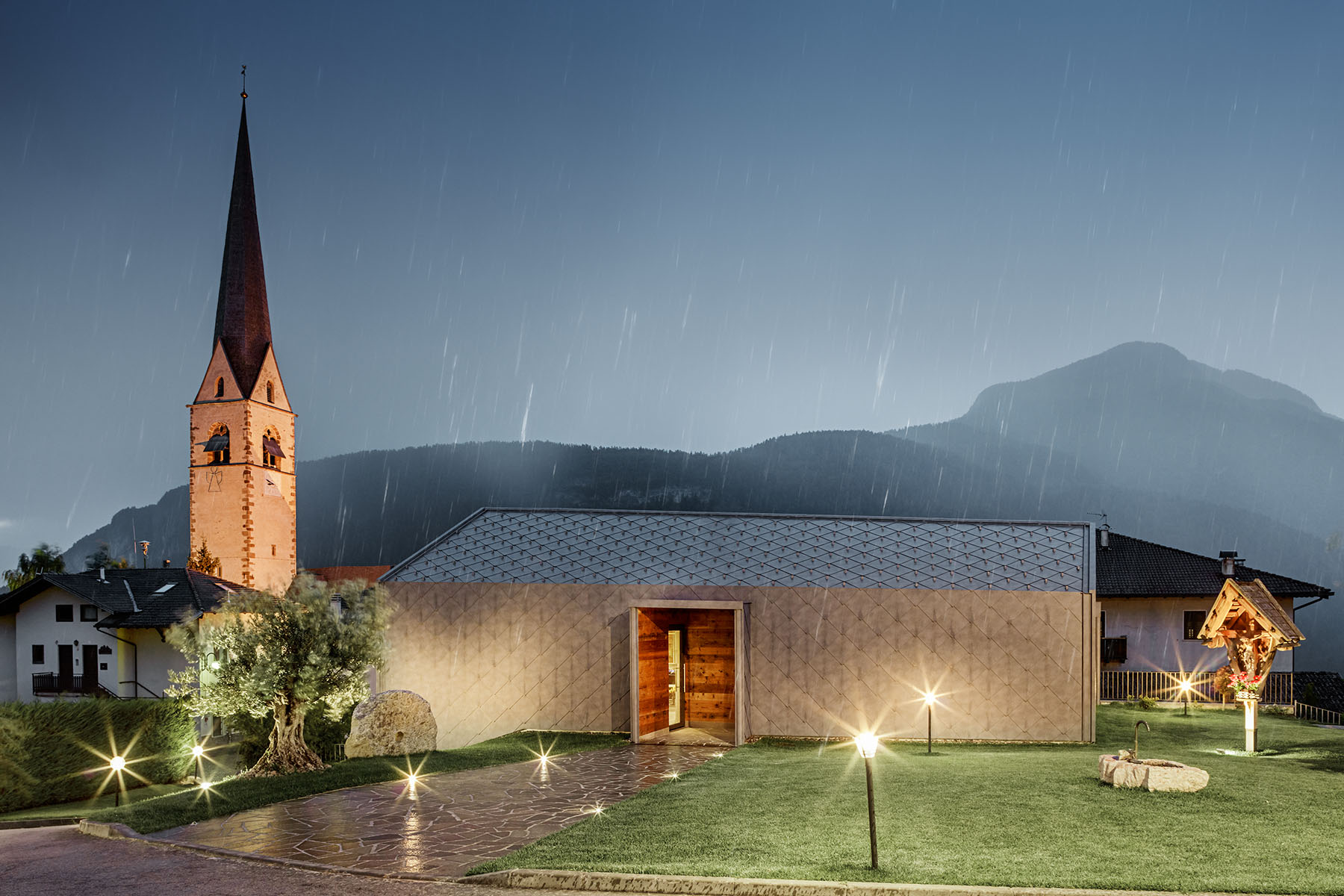 Claudio Conter, zakladatel architektonické a designérské kanceláře Atelier o7 v Miláně, otevřel před dvěma lety pobočku v New Yorku. Inspirace zpoza oceánu najdeme také v jeho práci ve vlasti. A kdo zná Itálii, ví, že rodina je nade vše. Proto také není náhodou, že budova projektovaná Claudiem Conterem stojí uprostřed vesnice se 170 obyvateli v Trentinu-Jižním Tyrolsku. Salón krásy, který přímo vyzařuje extravagantnost a přitom se začleňuje do krajiny, jako by byl odjakživa její součástí.