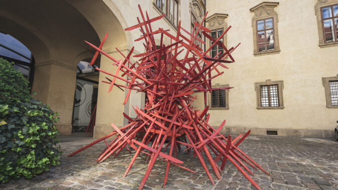 Ondřeje Bílka drží stráž před Tančícím domem a ve Františkánské zahradě přibylo tajemné sousoší Kokon