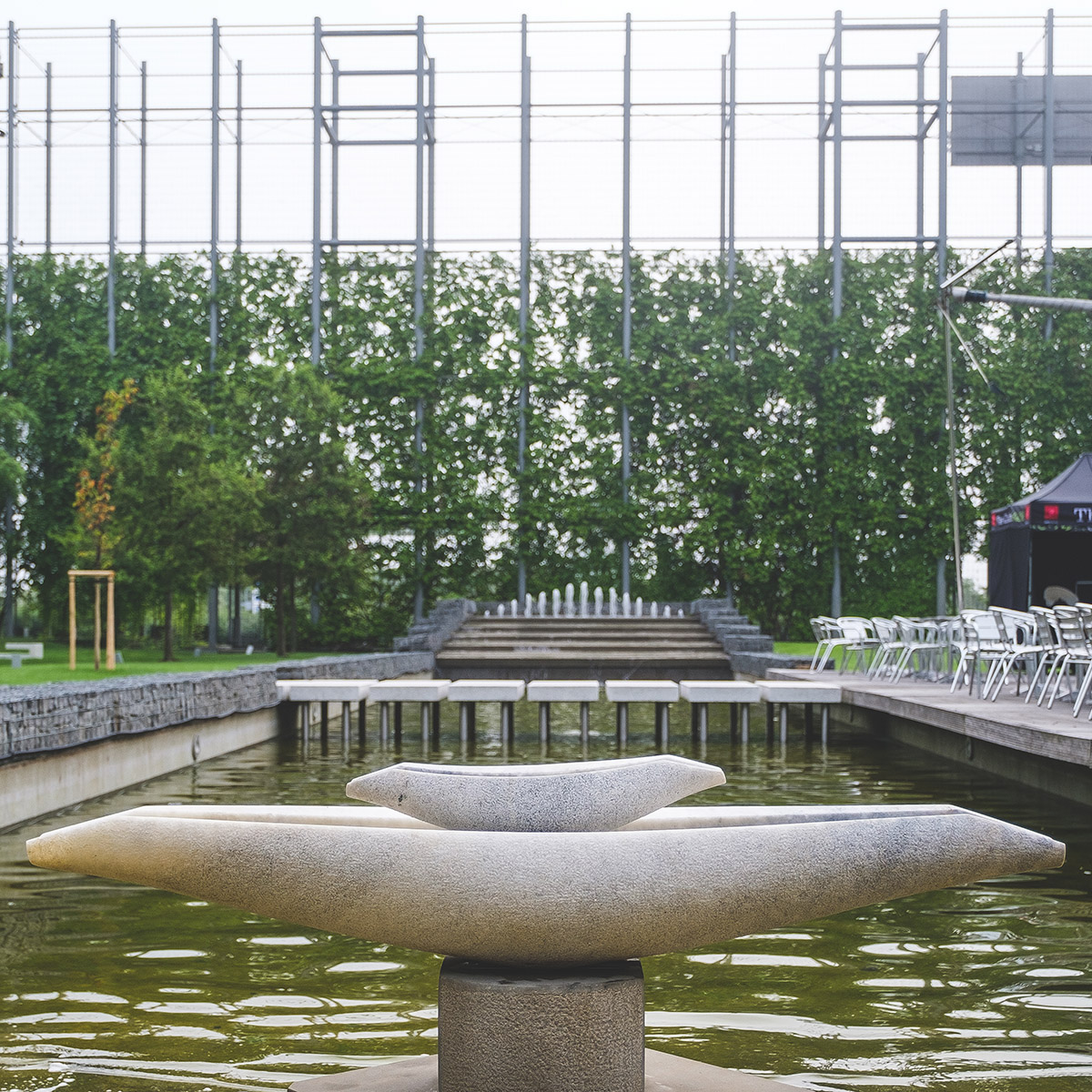 obří Cvičící postava Jakuba Flejšara a mramorová fontána