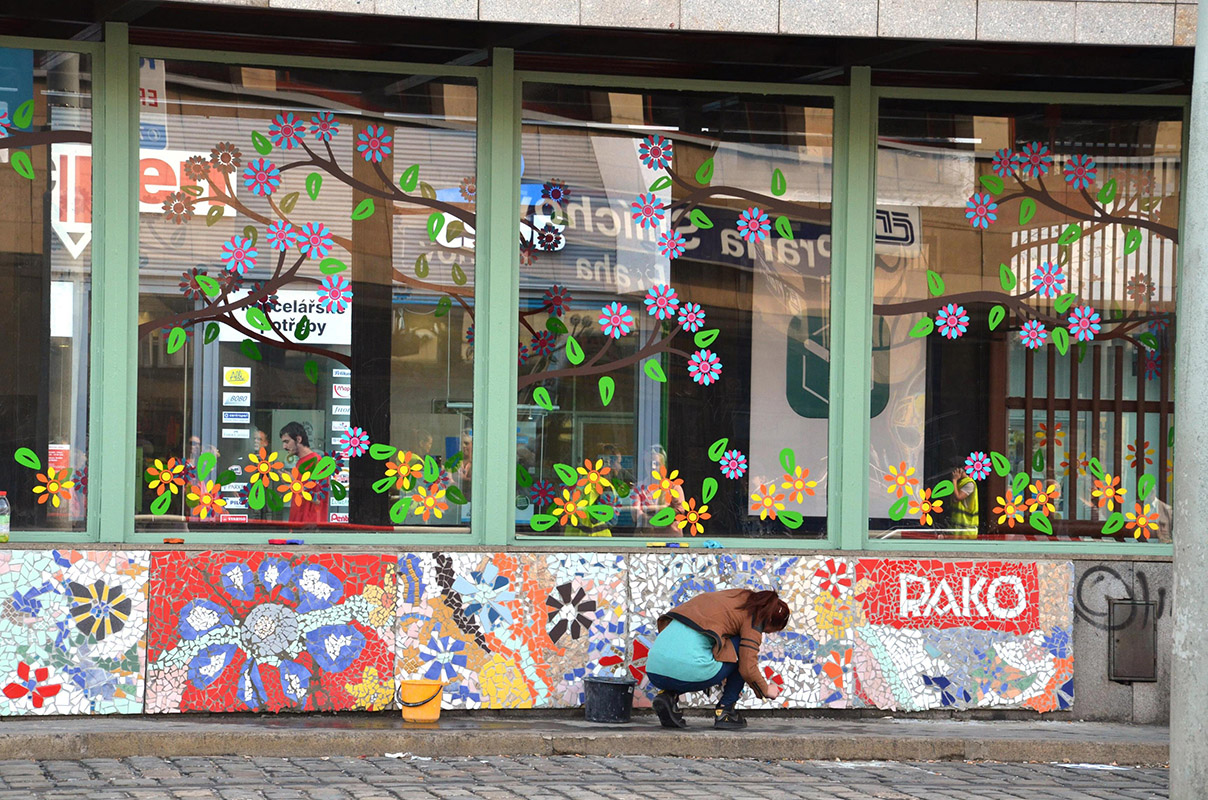 keramických obkladů RAKO proměnili v rozkvetlou, zářící louku. Proměna