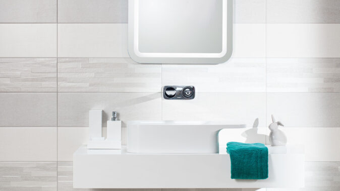 ● pro formát 20 x 40 cm jsou v nabídce dva typy dekorativních obkládaček pro celoplošné pokládání, reliéfní provedení obdélníčkové pseudomozaiky nebo dekor s decentním motivem