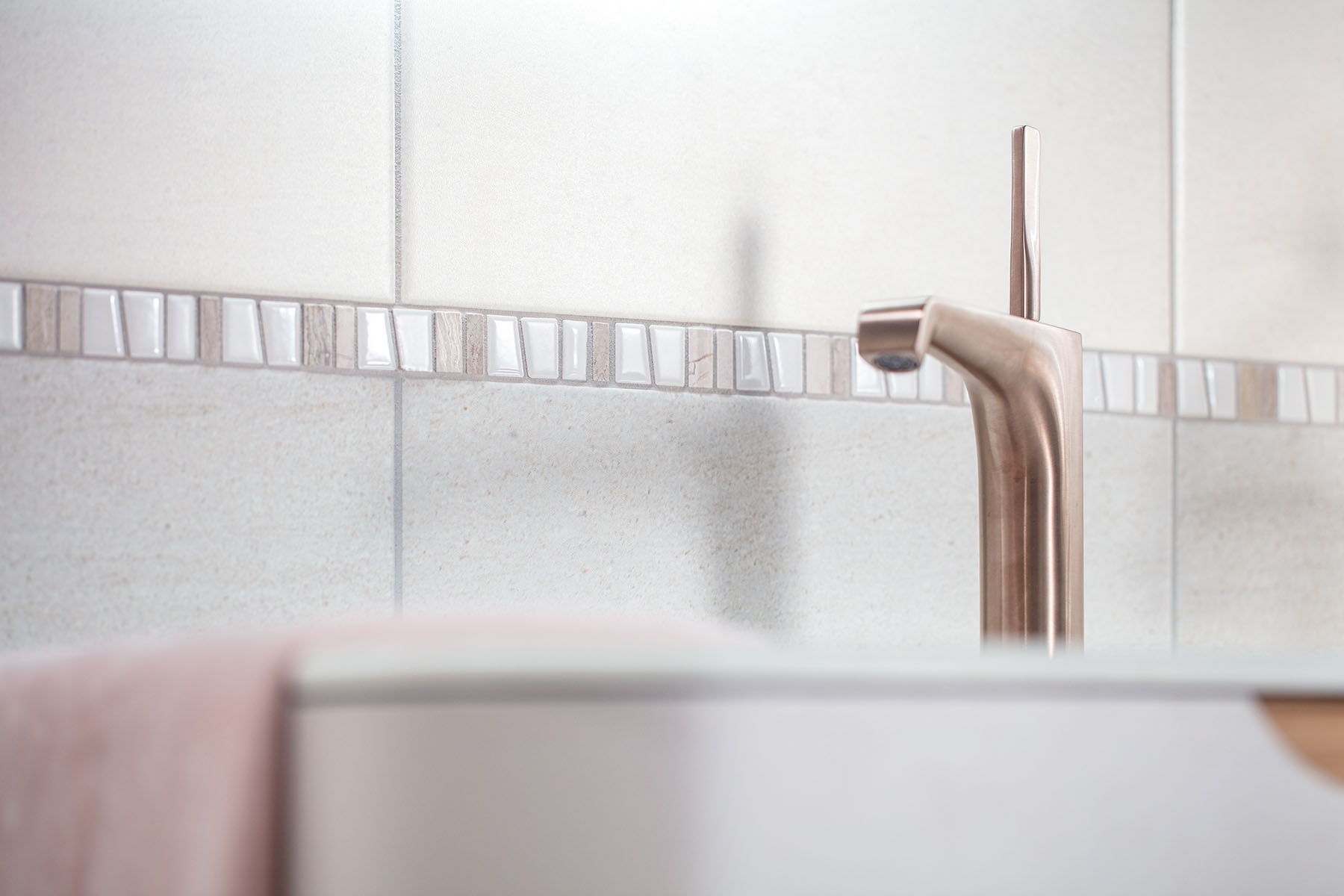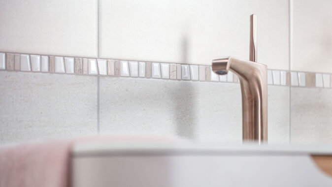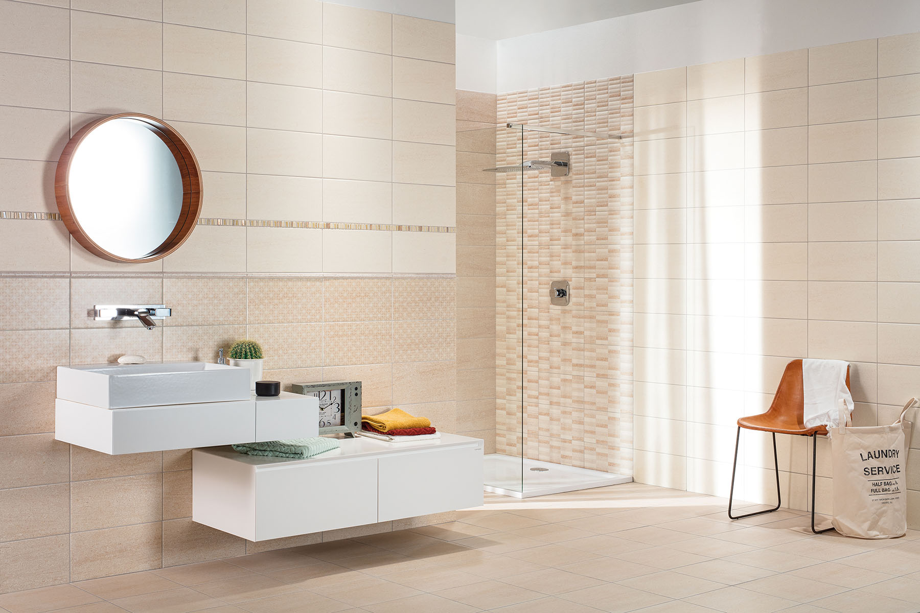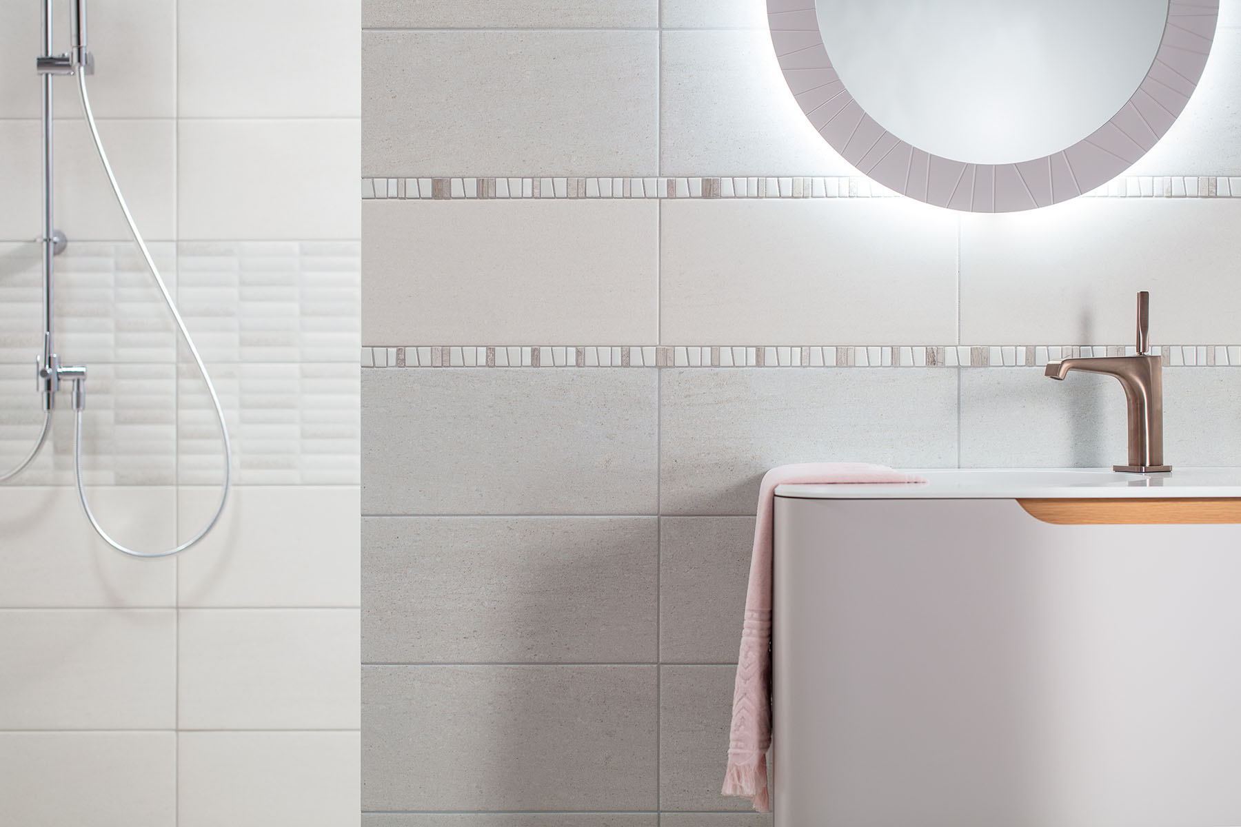 ● vzhled pískovce pro jednoduché nadčasové řešení koupelny