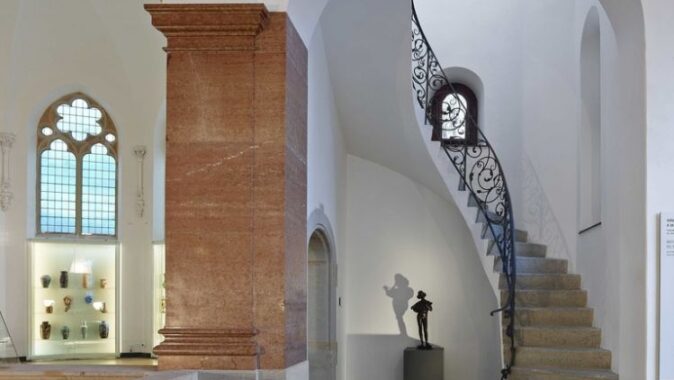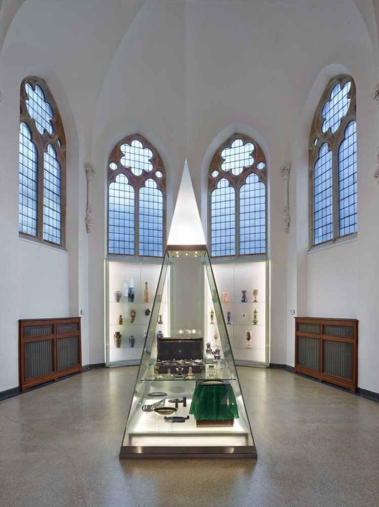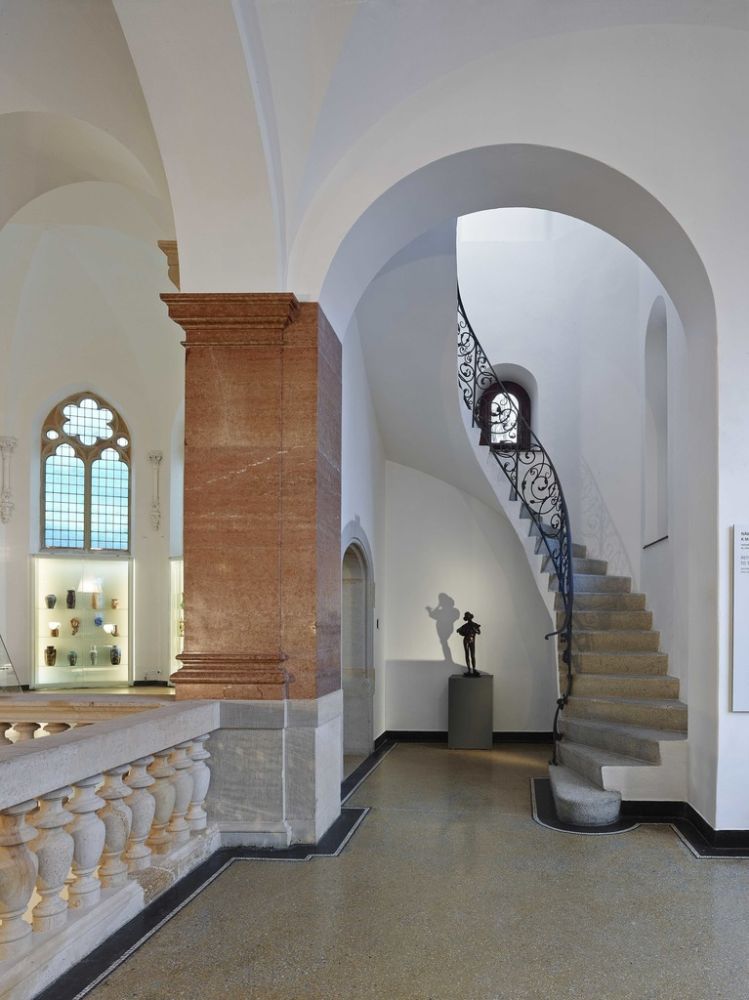 V rámci modernizace došlo k dispozičním změnám a změnám v uspořádání expozic, přemístění pokladny s vrátnicí, vybudování zaměstnaneckého výtahu a hygienického zázemí pro zaměstnance i veřejnost. Na základě požadavku zvýšení expoziční plochy byly navrženy patrové vestavby, které prostor rozdělují na další výstavní prostory. Jedná se o ocelovou konstrukci, opláštěnou sádrokartonovými deskami ve dvou vrstvách s barevným nátěrem. Svislé nosné konstrukce vestavby jsou z ocelových uzavřených profilů. Každá z vestaveb je atypická jak konstrukčním řešením, tak prostory, které vytváří – vznikají otevřená patra nebo uzavřené místnosti. Ve vstupním oktogonu a zadní části hlavního sálu (kaple) je dvojená skleněná podlaha včetně zábradlí, vyrovnávacích ramp a schodů. Konstrukčně se jedná o lepené sklo s vrchní kalenou vrstvou.