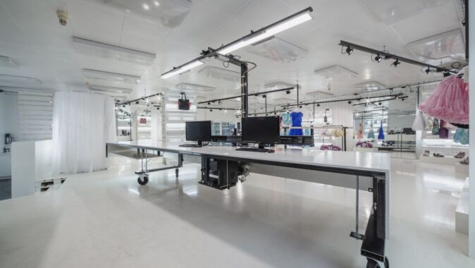 Zadání – konverze interiéru bývalého výpočetního střediska na showroom a zázemí e-shopu firmy Poshme.