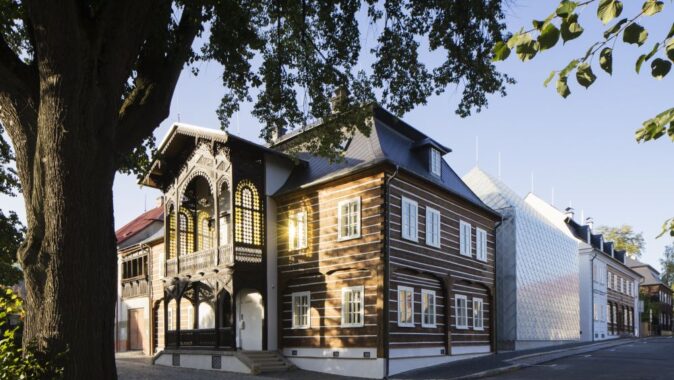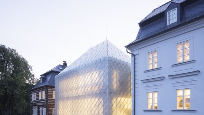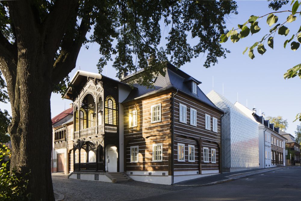 Palackého náměstí v Novém Boru nese atmosféru rychlého rozmachu města a sklářského řemesla během 19. století. Domy na náměstí a v přilehlých ulicích mají jednotný výraz, dvoupodlažní solidní hmoty s valbovými střechami a s hřebeny podél ulice. Návrh současnou formou interpretuje typický dvoupodlažní sklářský dům, doplňuje dva původní památkově chráněné objekty o dva nové domy a vytváří celistvý areál s vnitřním dvorem. Architektura místa zrcadlí silnou tradici sklářství, na kterou navazuje práce a design firmy Lasvit. Navržené novostavby si zachovávají proporce historických staveb.