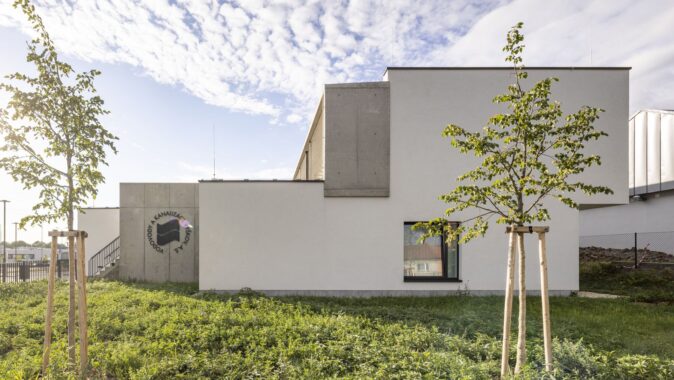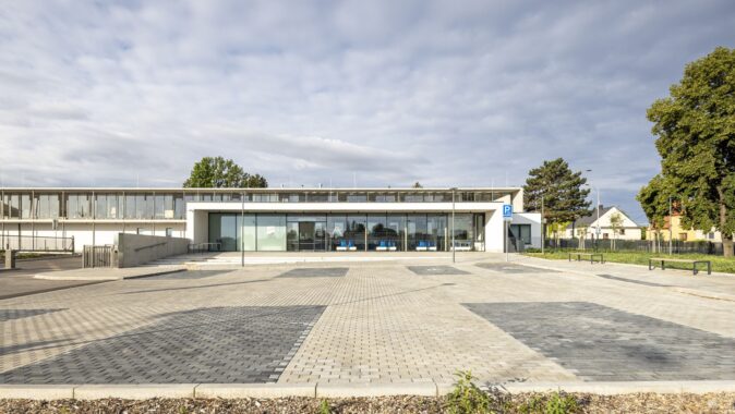 Modernizace areálu Vodovodů a kanalizací Vyškov, který se nachází v okrajové části města, byla navržena za účelem reorganizace stávajícího sídla firmy, tvořeného shlukem provozně nevyhovujících či budov ve špatném stavebně-technickém stavu. Z původních objektů je zachován jediný – částečně rekonstruovaná budova střediska 05, která je nově doplněna podélnou hmotou kopírující tvar pozemku a uzavírající chráněný prostor dvora. Novostavba důsledně odděluje provozy pro veřejnost a pro zaměstnance a nabízí přehledné dispoziční uspořádání, kde v přední, dvoupodlažní části jsou umístěny moderní zákaznické centrum a administrativní zázemí společnosti.
