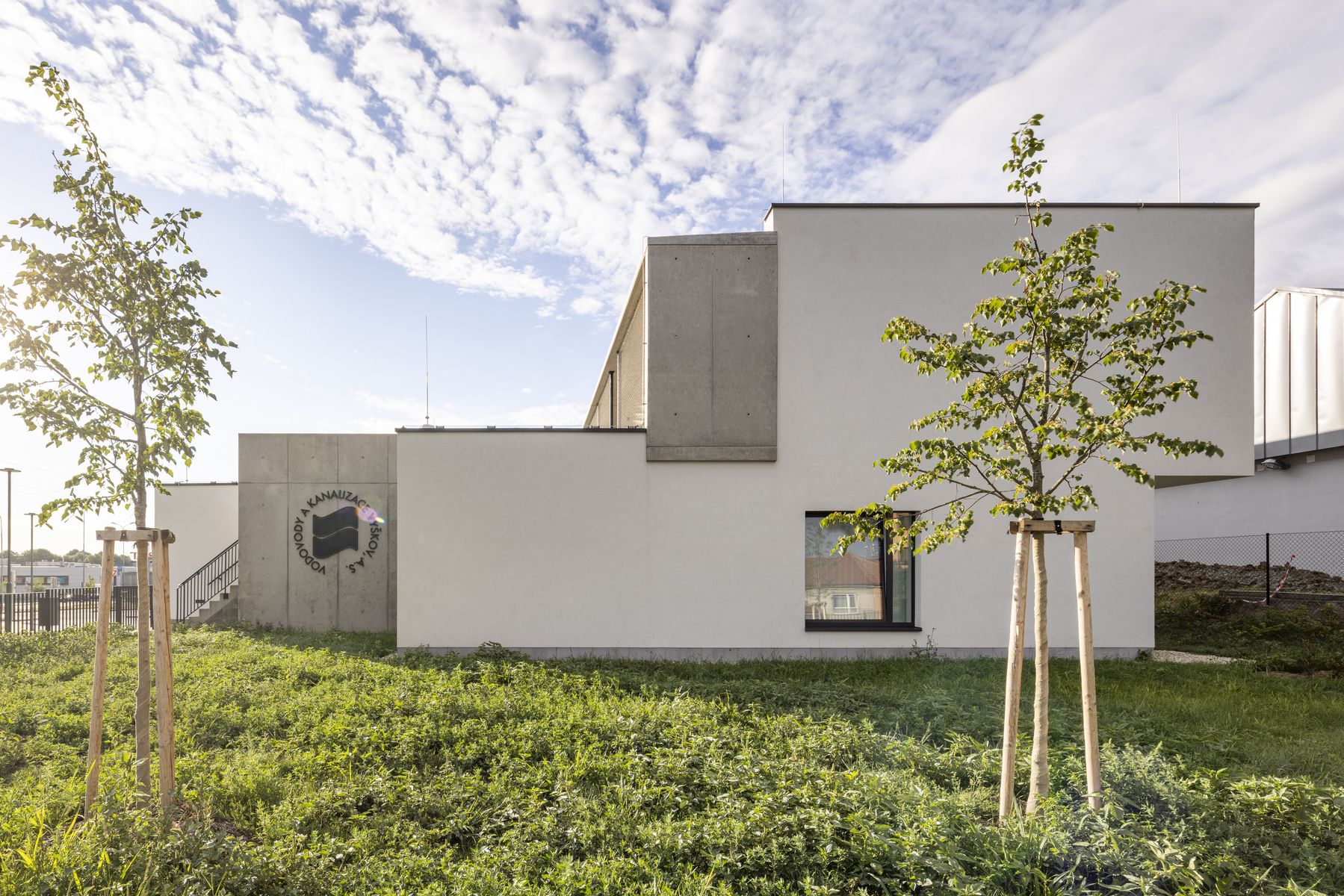 Modernizace areálu Vodovodů a kanalizací Vyškov, který se nachází v okrajové části města, byla navržena za účelem reorganizace stávajícího sídla firmy, tvořeného shlukem provozně nevyhovujících či budov ve špatném stavebně-technickém stavu. Z původních objektů je zachován jediný – částečně rekonstruovaná budova střediska 05, která je nově doplněna podélnou hmotou kopírující tvar pozemku a uzavírající chráněný prostor dvora. Novostavba důsledně odděluje provozy pro veřejnost a pro zaměstnance a nabízí přehledné dispoziční uspořádání, kde v přední, dvoupodlažní části jsou umístěny moderní zákaznické centrum a administrativní zázemí společnosti.