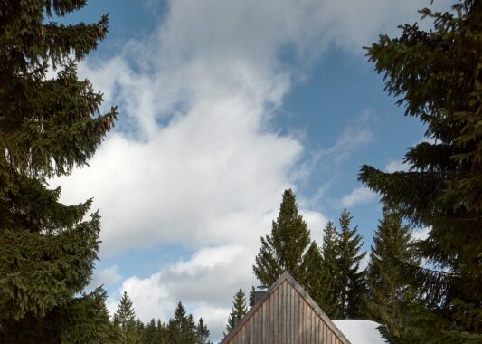 čela nenápadná chalupa, jedna z posledních před Jizerkou. Druhá strana stavení