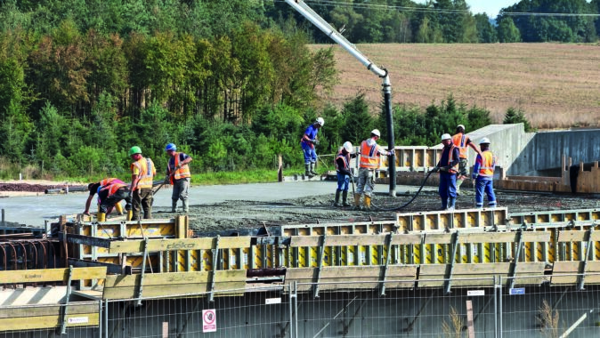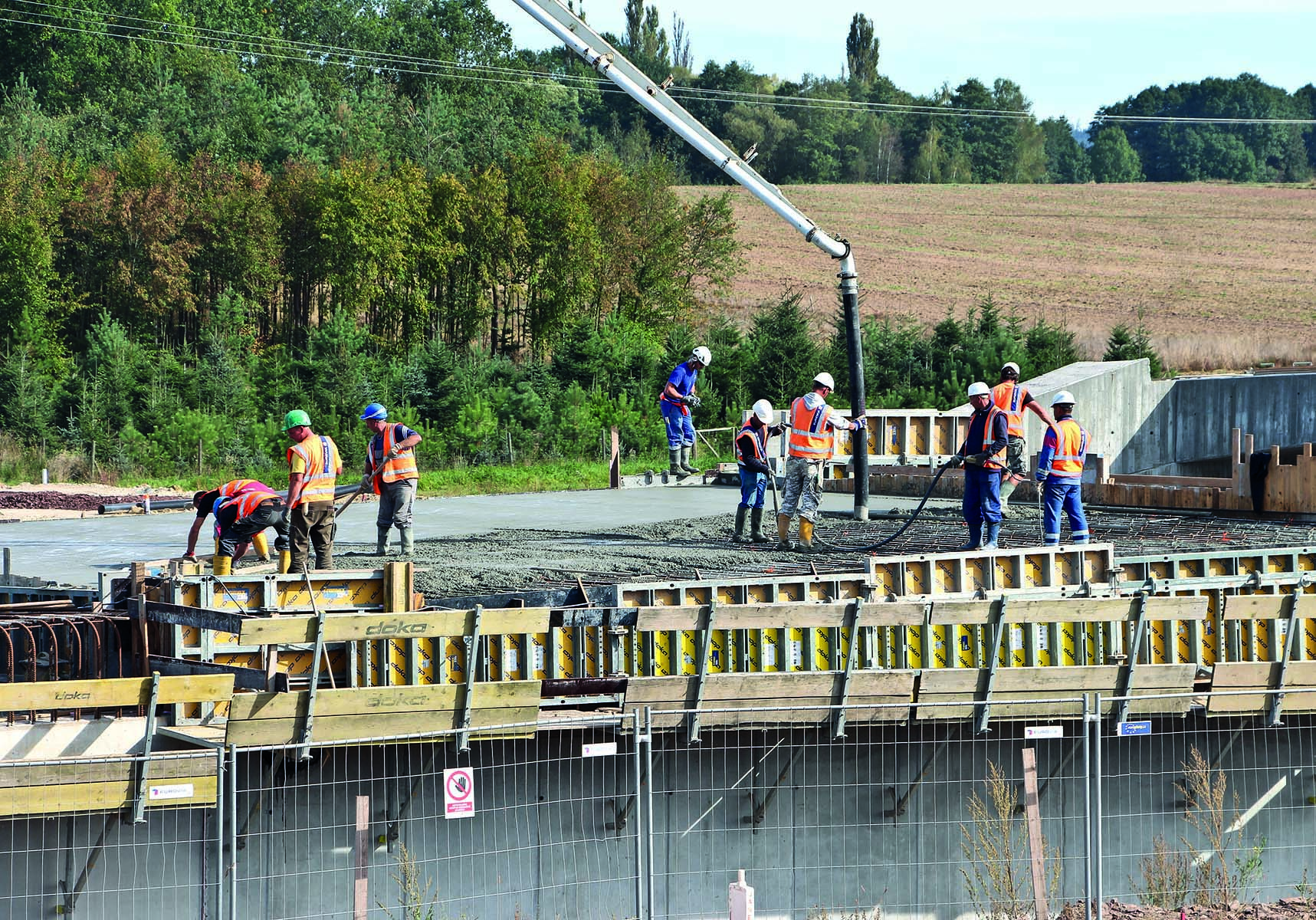dodávkami betonových směsí, probíhá rovněž výstavba nových úseků dálnic.