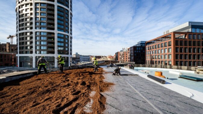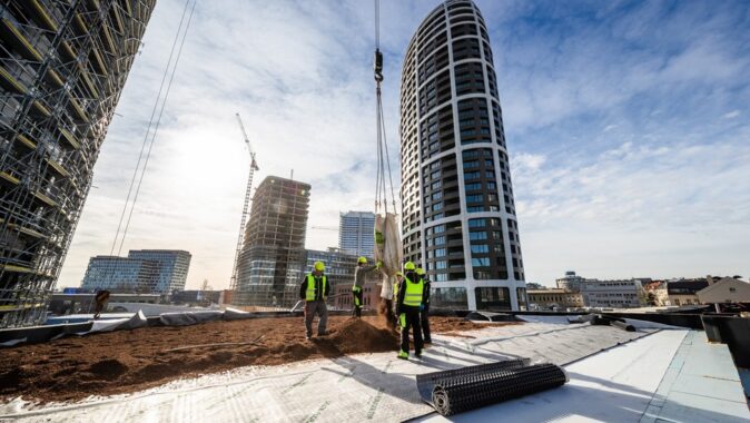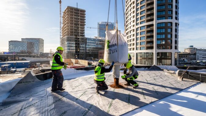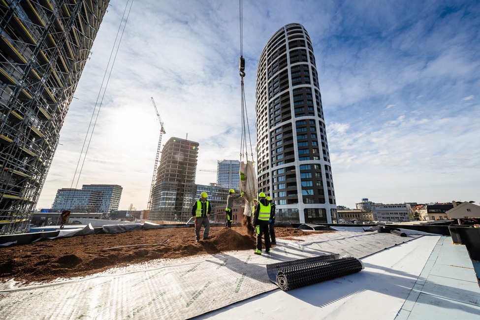 Vedle vegetačních střech bylo použito více než 40.000 m2 fasádní fólie DELTA-FASSADE S pro ochranu zatepleného systému fasád, společně s páskou DELTA-TAPE FAS 60. Volbu investora podpořil fakt, že naše fólie i s páskou splňují přísné podmínky reakce na oheň B-s1, d0 – tedy nejvyšší možnou nehořlavost. U výškových budov (ale nejen u nich) je to oprávněný požadavek, protože požáry výškových budov mívají fatální důsledky pro obyvatele a uživatele.