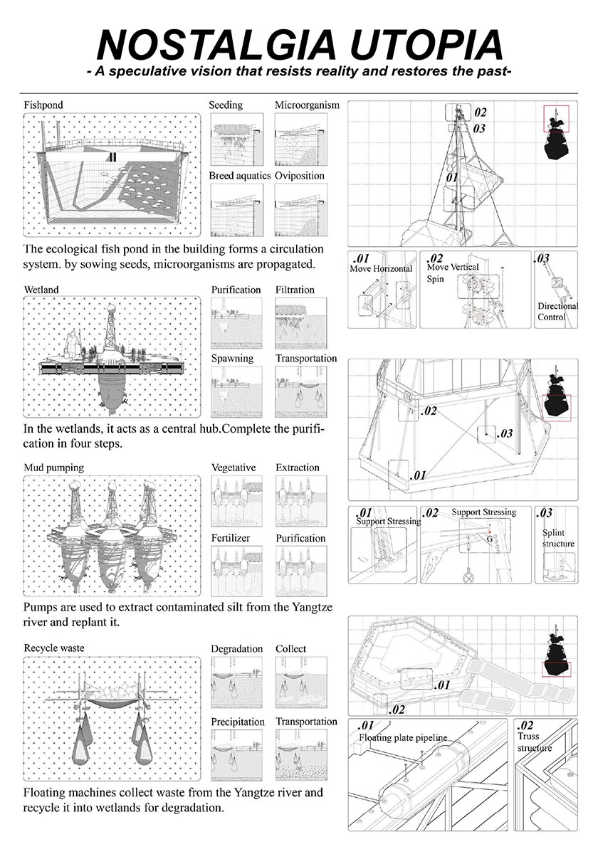 Cílem projektu je obnovit vzpomínku na obyvatele postižené výstavbou přehrady Třech soutěsek v Číně. Kvůli tomuto kolosálnímu projektu bylo mnoho vesnic zaplaveno. Tento návrh se snaží obnovit společenské a soukromé prostory na pobřeží ale i na hladině nového jezera. Lehkost a nerezavitelnost BCORE vyhovuje struktuře vesnice. Každý hexagonální modul je propojen a vytváří tak obrovskou plovoucí plataformu. Celé první patro je sdruženým veřejným prostorem, zatímco podlahy nad tvoří bydlení. Celý plovoucí systém je vybaven rybími farmami, čištěním vzduchu a vody.