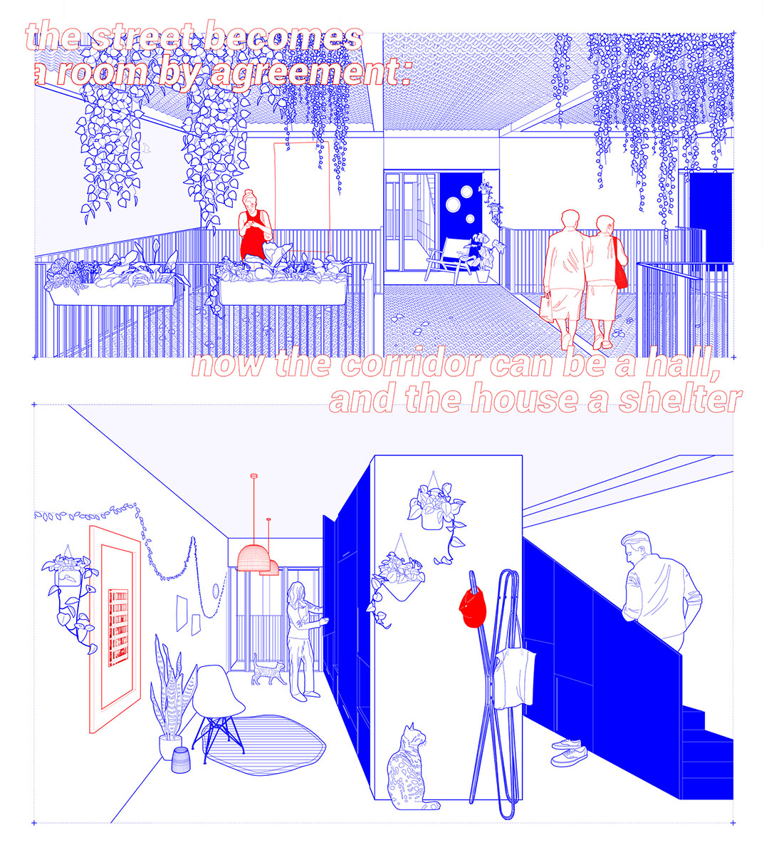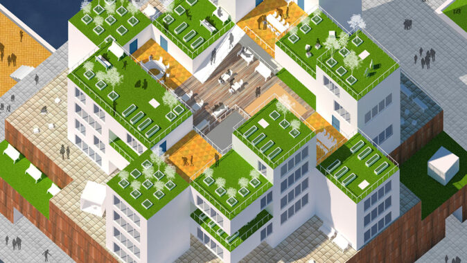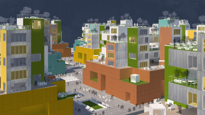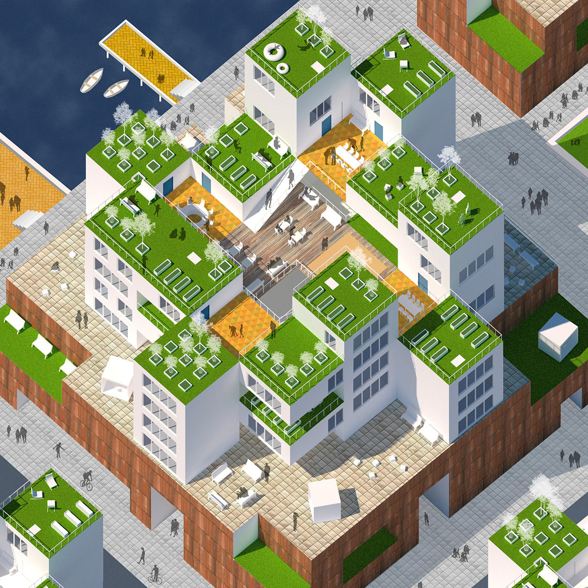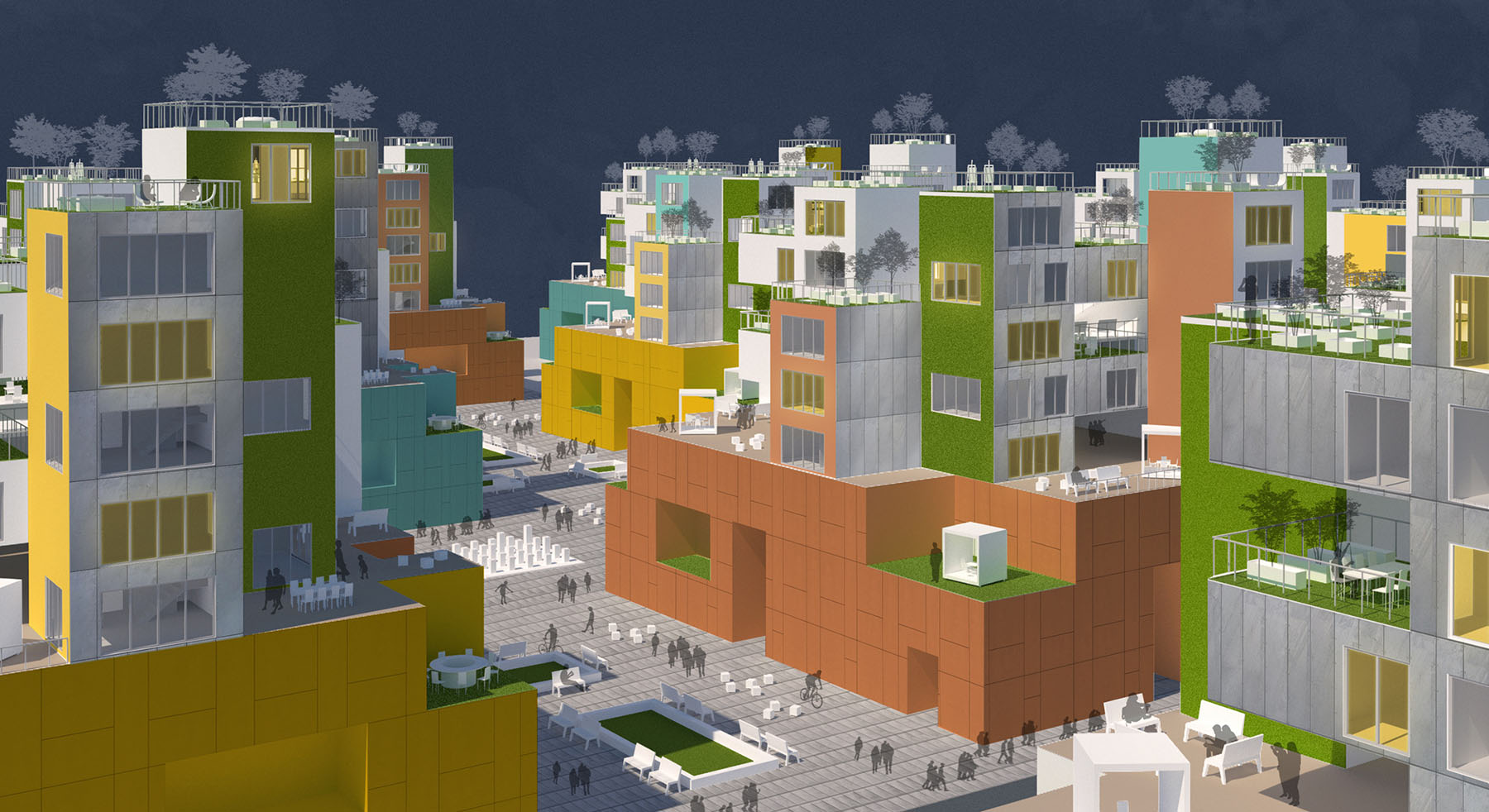Koncept tohoto společného obytného prostoru je struktura, která umožňuje různým lidem shromažďovat se v jedné čtvrti. Kombinuje různé bytové jednotky a různé veřejné prostory pro interakci svých obyvatel. Základnu tvoří třípatrový stylobat se smíšenými funkcemi, který hnízdí bytové jednotky různých velikostí. Existuje pět typů jednotek; S, M, L, XL a XXL. Všechny se do sebe integrují jako Tetris.