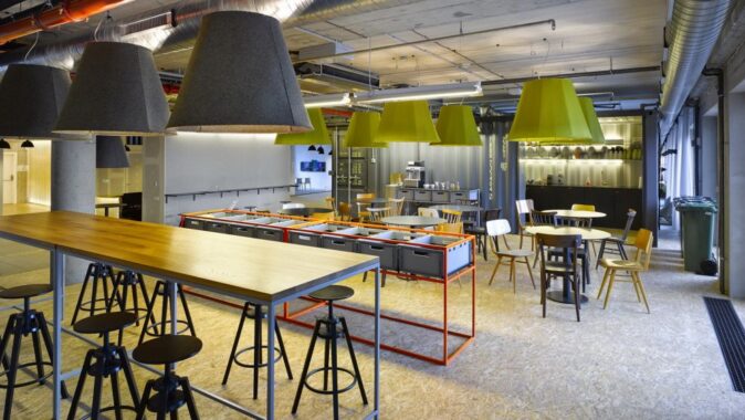 korporátnímu prostředí budovy – hned od vstupního laminátového tunelu je
