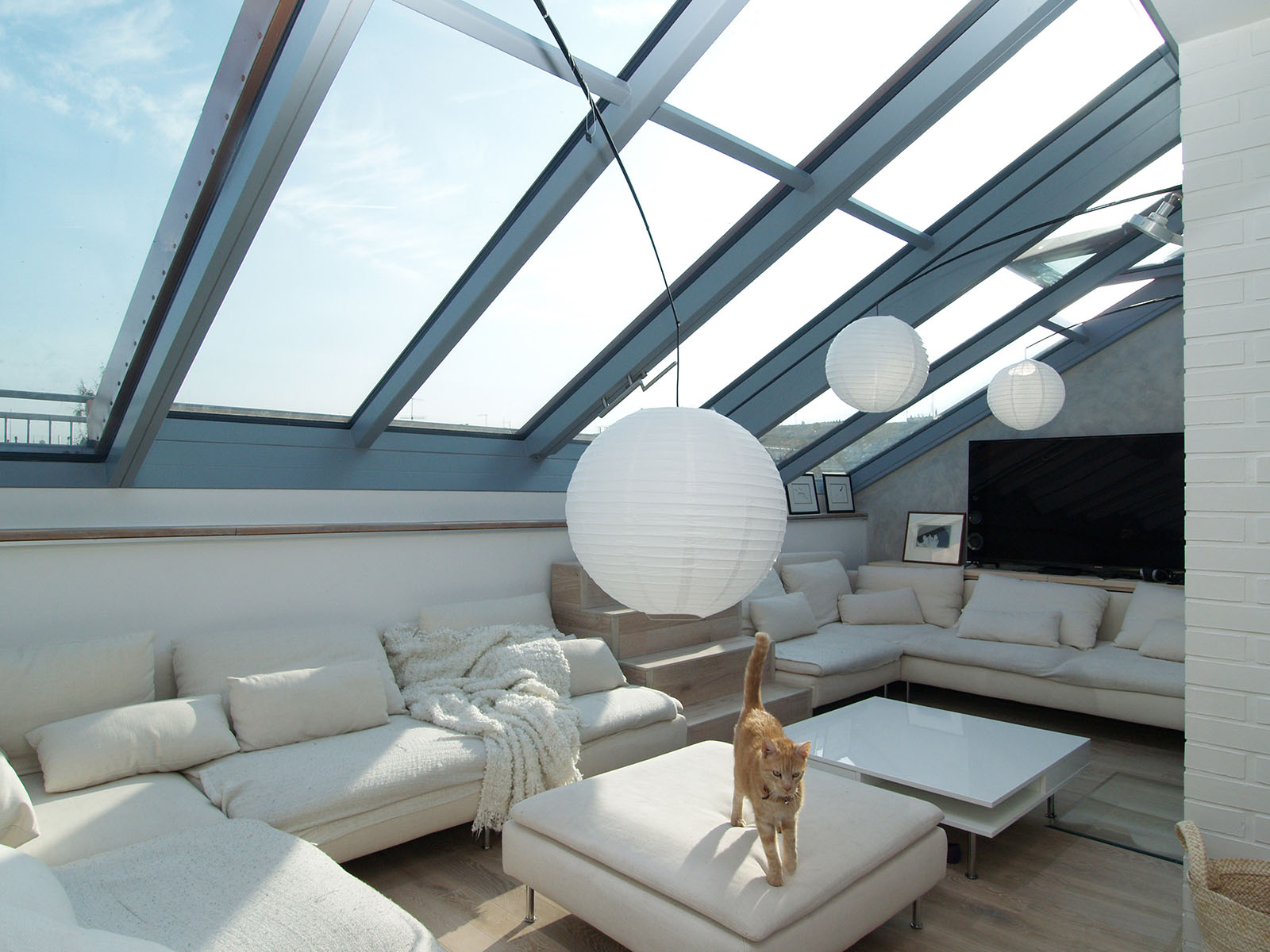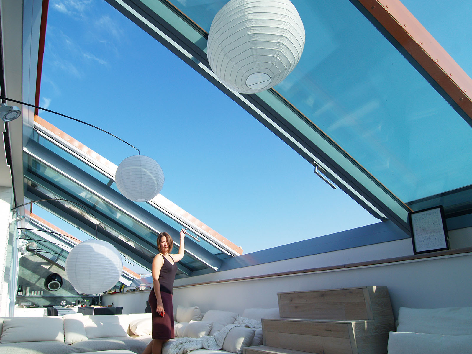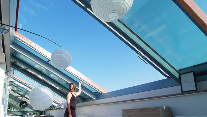 vyráběné odsuvné střešní prosklení. Celé plochy prosklení se odsouvají nad