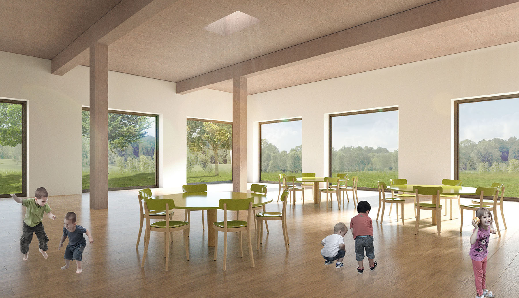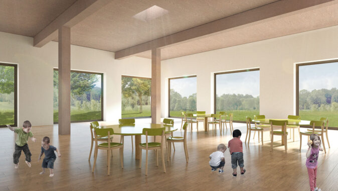 koncept umožňuje rychlou změnu velikosti školky i změnu vnitřního využití.