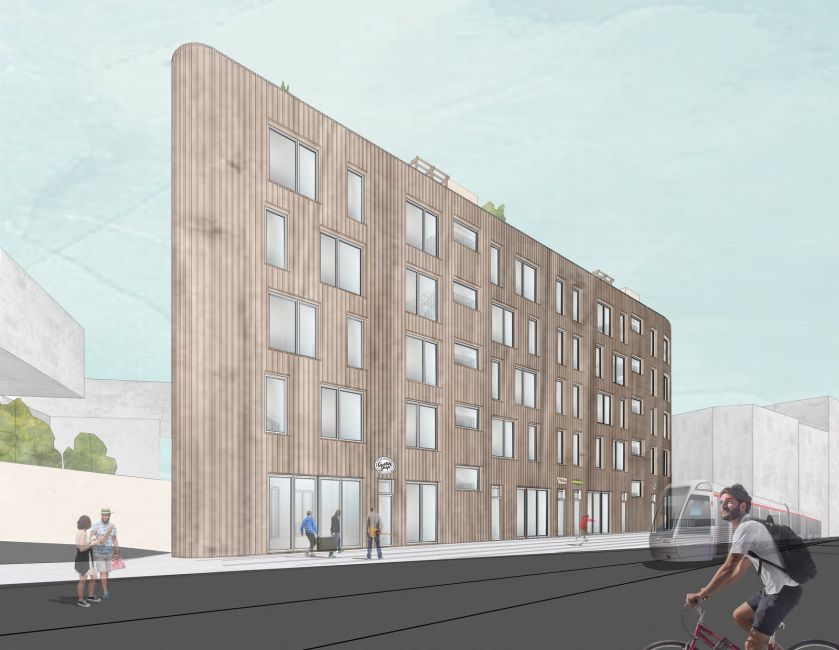 • Projekt Transitus od Lady Zapletalové z ateliéru Lampa. Porota ve svém hodnocení zdůraznila obdivuhodný návrh velkého měřítka v kontextu sídlištní zástavby.