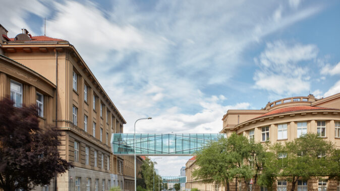 uvažovaného spojení obou budov od jejich autora architekta Antonína Engela z