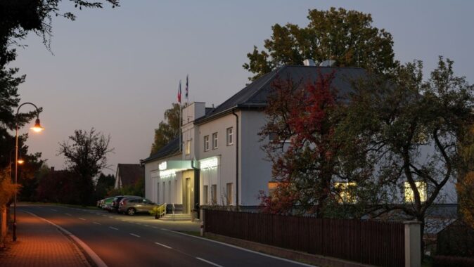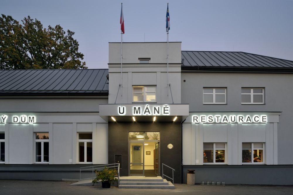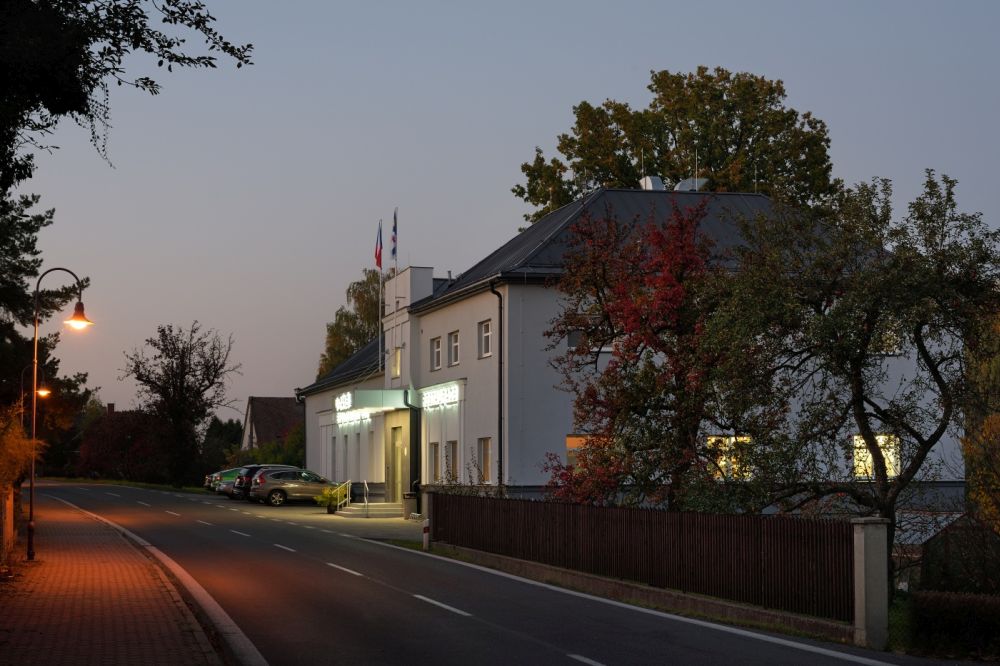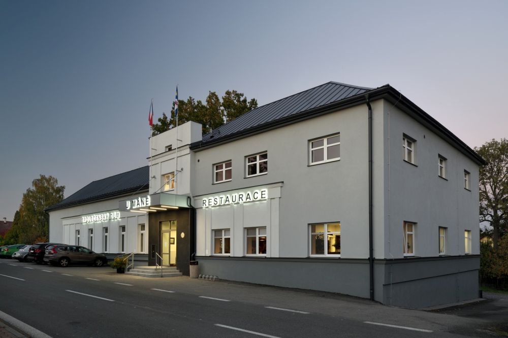 Na fasádu jsme vrátili štukovou výzdobu, více menších místností v restauraci jsme spojili do jedné, ve 2. NP jsme obnovili byt a vytvořili šatny pro účinkující a zájmová sdružení, která využívají opravený sál.