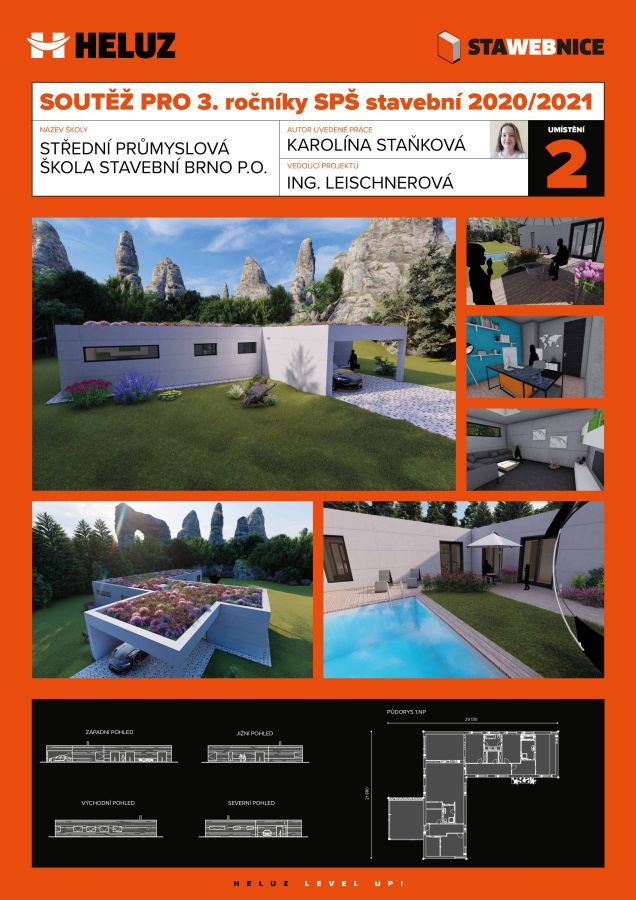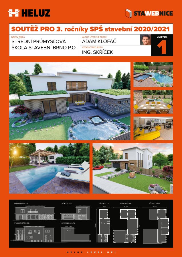 Vítězem soutěže PROJEKTUJEME ENERGETICKY ÚSPORNÝ RODINNÝ DŮM Z CIHELNÉHO SYSTÉMU HELUZ 2021 se stal Adam Klofáč (Střední průmyslová škola stavební Brno p.o., vedoucí projektu Ing. Skříček), druhé místo patří Karolíně Staňkové (Střední průmyslová škola stavební Brno p.o., vedoucí projektu Ing. Leischnerová) a na třetím místě se umístil Patrik Vlček (Střední škola průmyslová a umělecká, Hodonín, vedoucí projektu Ing. Zámečníková).