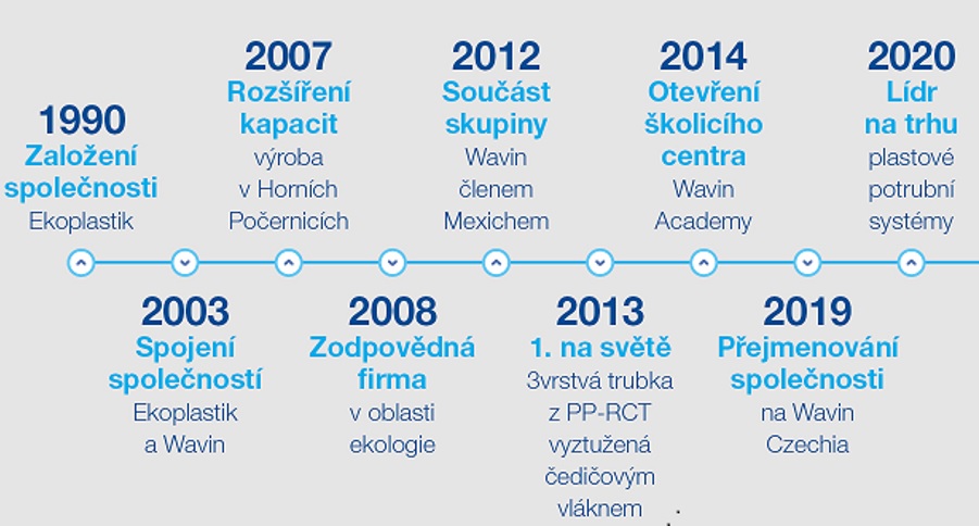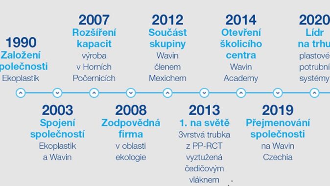 „Právě díky spojení s firmou Wavin, jejíž historie sahá až do roku 1955, došlo k výrazné expanzi společnosti Ekoplastik, která se přejmenovala na Wavin Ekoplastik. V sídle firmy v Kostelci nad Labem byl zahájen vývoj a následně i výroba trubek a tvarovek z polypropylenu nové generace, PP-RCT, které se velmi rychle ujaly na českém i zahraničním trhu,“ popisuje Krzysztof Bocek, ředitel společnosti. Dalším významným milníkem historie firmy byl rok 2012, kdy se firma stala součástí mezinárodní skupiny Mexichem. V roce 2019 skupina změnila název na Orbia, ke stejnému datu se pak firma přejmenovala na Wavin Czechia.