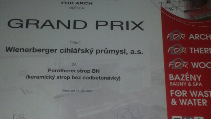 Druhý den mezinárodního stavebního veletrhu, 16. září 2015, byly slavnostně předány ceny Grand Prix pro nejinovativnější výrobky stavebních veletrhů a ocenění za nejpoutavější expozici Top Expo. Stalo se tak na galavečeru mezinárodního veletrhu FOR ARCH. Cenu Grand Prix si společnost Wienerberger cihlářský průmysl, a. s. odnesla za inovativní řešení nosné stropní konstrukce pro svépomocnou výstavbu umožňující snížení konstrukční výšky, hmotnosti a pracnosti (Strop Porotherm BN – strop bez nadbetonávky).