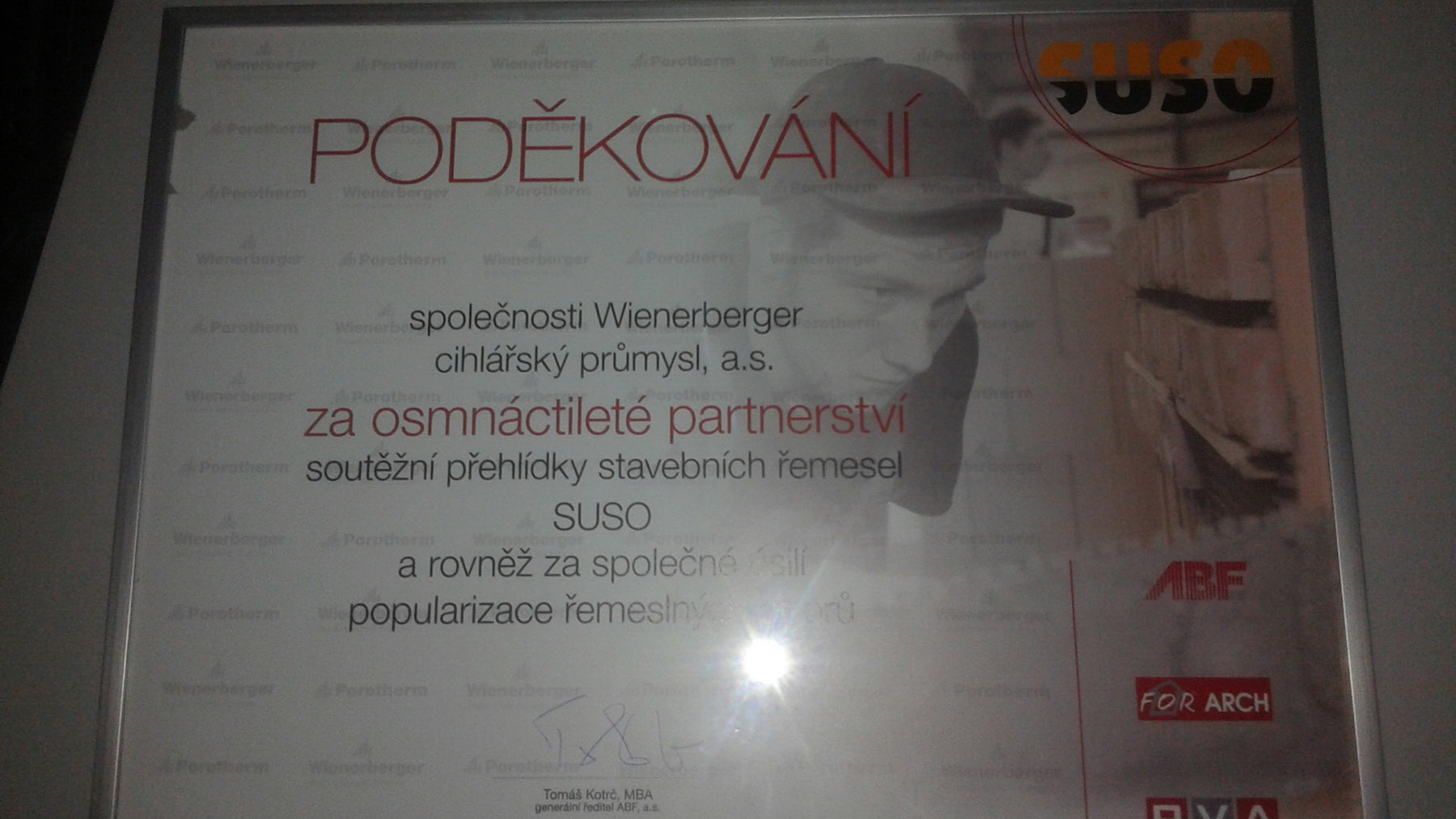 Společnost Wienerberger cihlářský průmysl získala poděkování za podporu odborných škol a učňů formu soutěže SUSO (Soutěžní přehlídky stavebních řemesel 2014/2015), které je společnost Wienerberger generálním partnerem již 18 let.